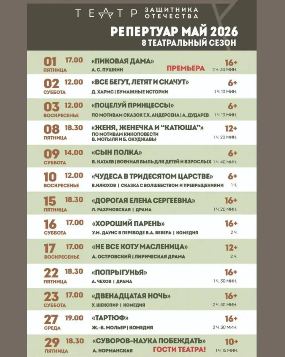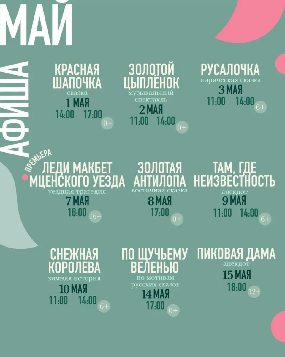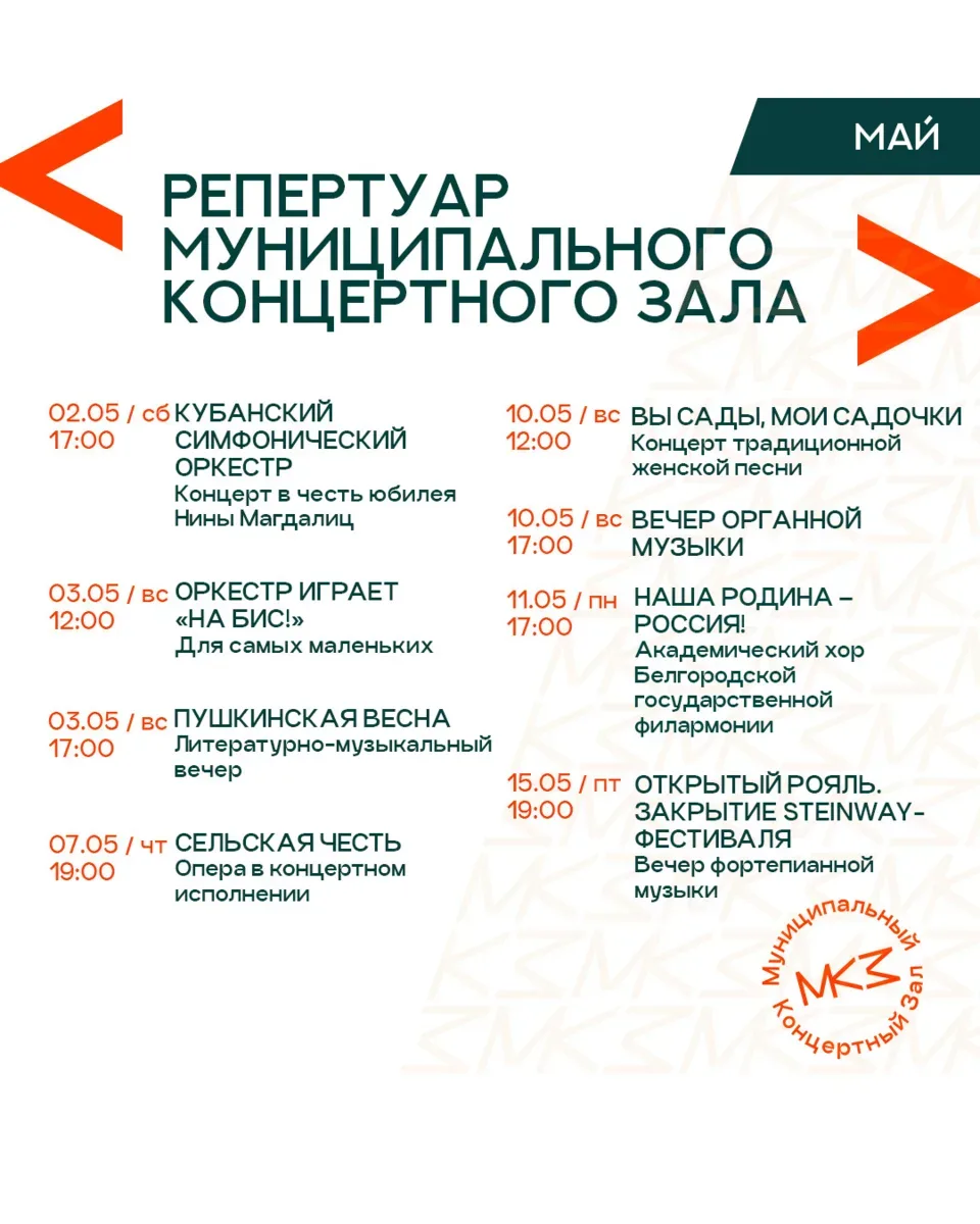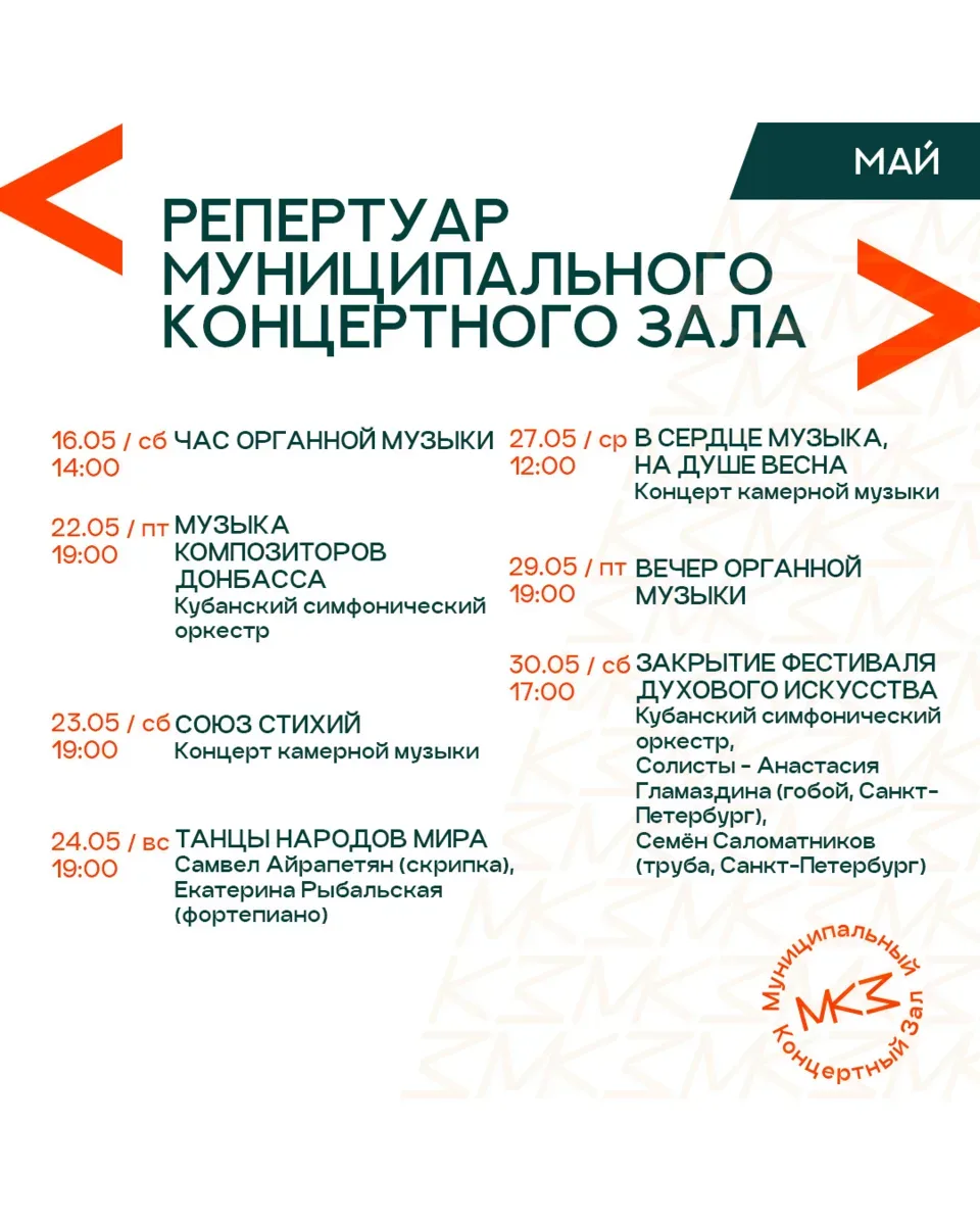 АФИШИ «БОЛЬШИХ» КРАСНОДАРСКИХ ТЕАТРОВ НА МАЙ Уже строите планы на майские? Рекомендуем не ограничиваться новыми рецептами маринада и уже сейчас заглянуть за билетами в театр. В конце концов, шашлык шашлыком, а выход в свет — это святое! Выбирайте даты прямо сейчас, хорошие места быстро заканчиваются! 🎭 Краснодарский театр драмы им. Горького — vk.сom/dramteatrkrd 🎭 Музыкальный театр — vk.сom/muzteatrkrd_official 🎭 Дворец искусств — vk.com/dvorets_iskusstv_premiera 🎭 Муниципальный концертный зал — vk.сom/organ_hall 🎭 Новый театр кукол — vk.сom/novyyteatrkukol 🎭 Краевой театр кукол — vk.сom/kukl…