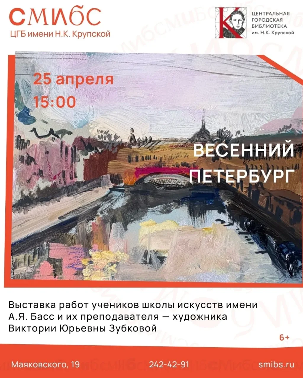 Открытие выставки «Весенний Петербург» ⏰25 апреля (сб), в 15:00 📍Центральная городская библиотека им. Н. К. Крупской, ул. Маяковского, 19 💵Вход свободный Библиотека презентует работы учеников детской школы искусств Анетты Яковлевны Басс и их преподавателя - художника Виктории Юрьевны Зубковой. Все картины написаны во время Пасхальной недели на пленэре, под открытым небом Санкт-Петербурга. Каждая работа впитала в себя дух праздника и атмосферу культурной столицы. Подробности по телефону - 88462424291 Афиша TG • Афиша MAX