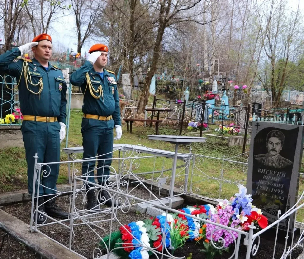Последняя пятница апреля — день, когда сотрудники МЧС по всей стране вспоминают своих товарищей, отдавших жизни в борьбе с огненной стихией и спасая людей. В пожарно-спасательных подразделениях республики прошли памятные мероприятия: разводы караулов и минуты молчания. Коллектив городской пожарно-спасательной части № 1 провел траурную церемонию на кладбище. Пожарные возложили гирлянду воинской славы к могиле своего боевого товарища — Юрия Петровича Витухина. Юрий Петрович начал службу водителем пожарного автомобиля в Горно-Алтайске весной 1993 года. Его жизнь трагически оборвалась в ночь на 1…