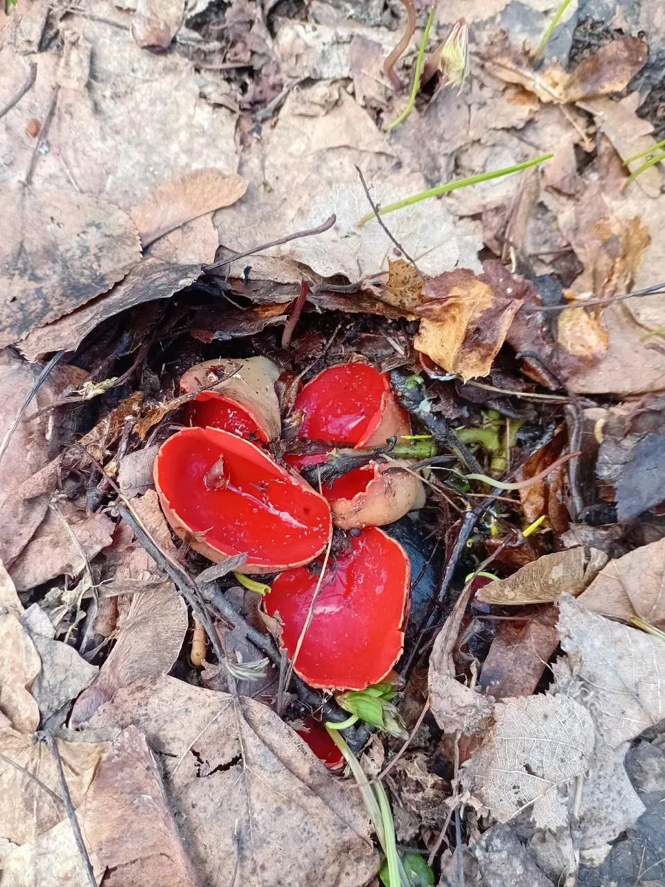 Грибочки пошли! В нацпарке «Башкирия» появились саркосцифы. Их легко узнать по необычной форме: маленькие алые «чашечки» заметны среди травы и мха.