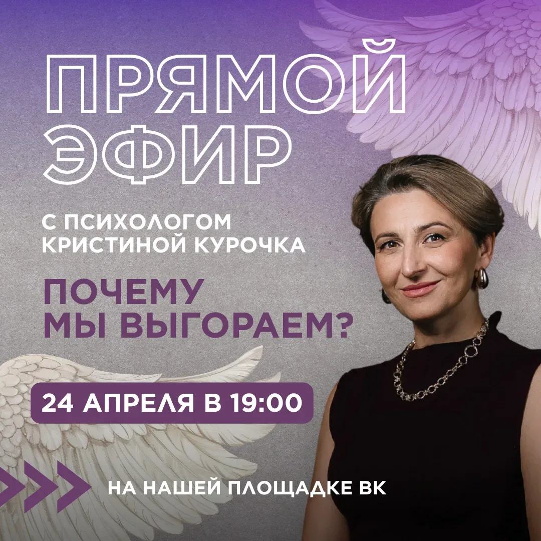 Когда сил становится все меньше, а внутри накапливаются усталость, раздражение и тревога, очень важно вовремя заметить свое состояние и помочь себе с ним справиться. Приглашаем вас сегодня, 24 апреля в 19:00, на открытый прямой эфир с психологом Кристиной Курочка в нашей группе в VK: vk.ru/4toto_lichnoe «Почему мы выгораем?» • Что такое выгорание и как его отличить от усталости? • Почему отдых не всегда помогает восстановиться? • Какие шаги предпринять, чтобы почувствовать себя лучше? Ведущая эфира: Алла Митрофанова Ставьте ❤️, если тема важна, и пишите вопросы в комментариях 🪽 «КАК ВЕРНУТЬ С…