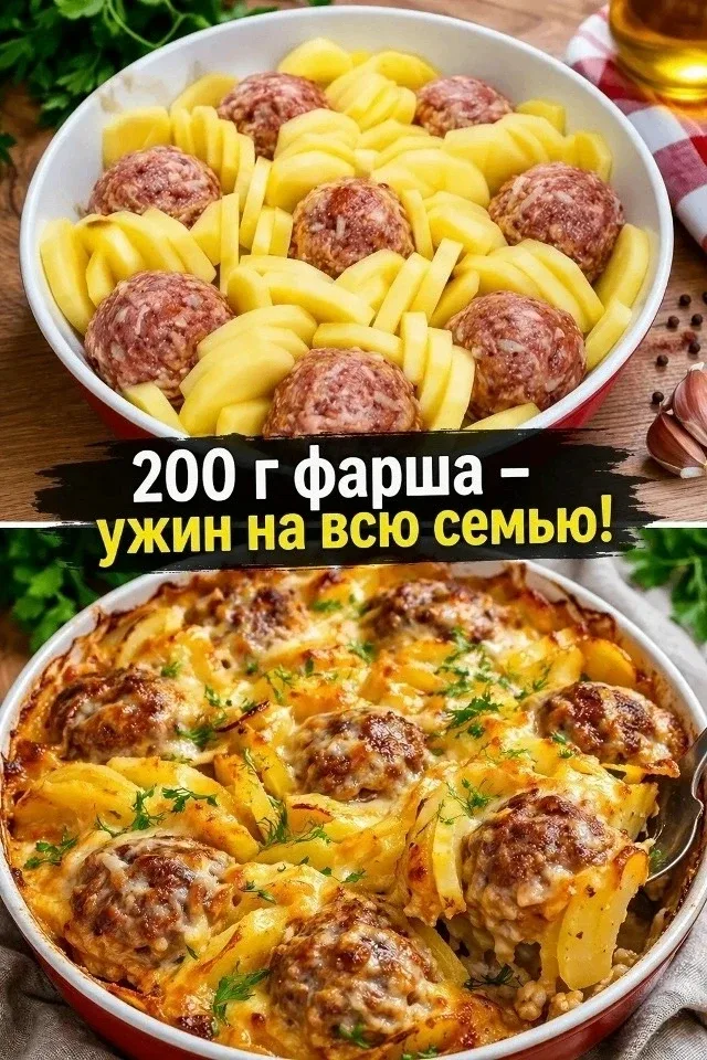 Наверное, каждая хозяйка хотя бы раз попадала в такую ситyацию: задержалась на работе, вышла — а магазин закрыт. Приходится варить «кашу из топора» из тех продуктов, которые есть дома. Эта запеканка — как раз такой вариант. Картофель, немного фарша, рис и простой соус — а в итоге получается сытный, ароматный ужин, который нравится всем. Нам понадобится: - Говяжий фарш — 200г. - Рис — 150г. (в сухом виде) - Картофель — 500г. - Морковь — 1шт. - Лук — 0,5шт. - Вода — 1 стакан - Сметана — 2 ст.л. - Подсолнечное масло — 2 ст.л. - Твёрдый сыр — 50г. - Соль — по вкусу - Чёрный перец — по вкусу - Про…