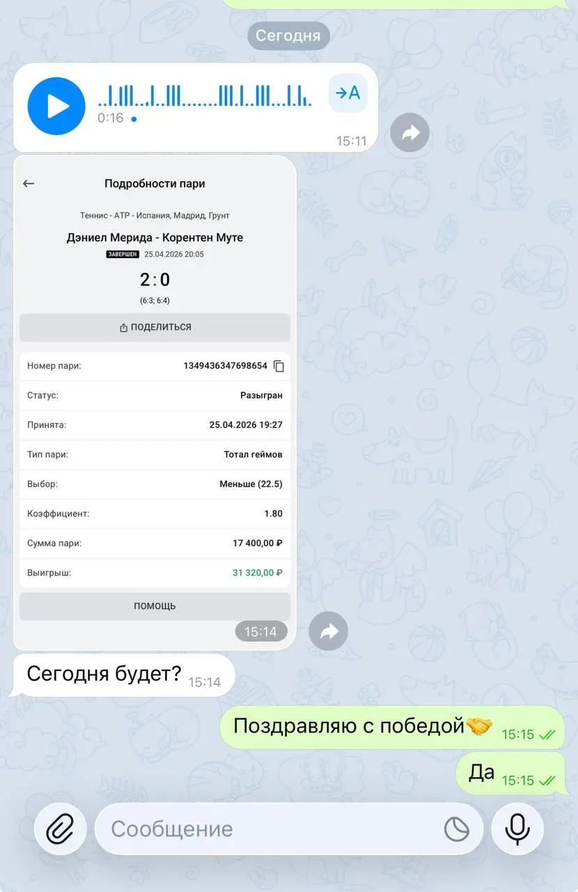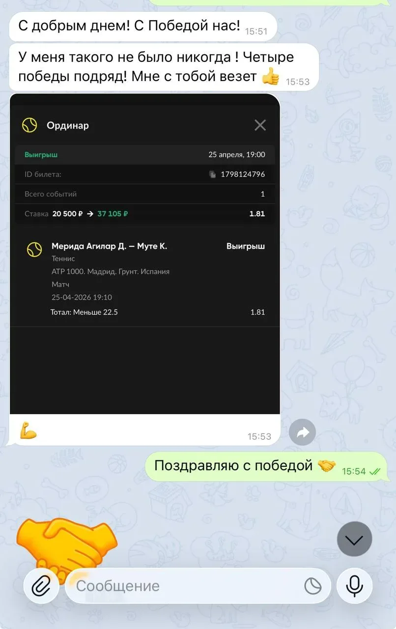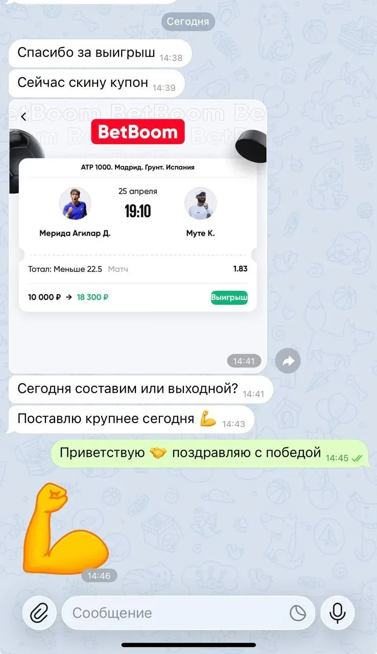 Канал будет интересен любителям теннисных ставок, которые ищут готовые экспрессы и лайв-прогнозы. Если вы хотите получать аналитику от каппера без самостоятельного разбора матчей — это подходящий источник. Контент подходит как новичкам, так и опытным игрокам, ценящим оперативность.