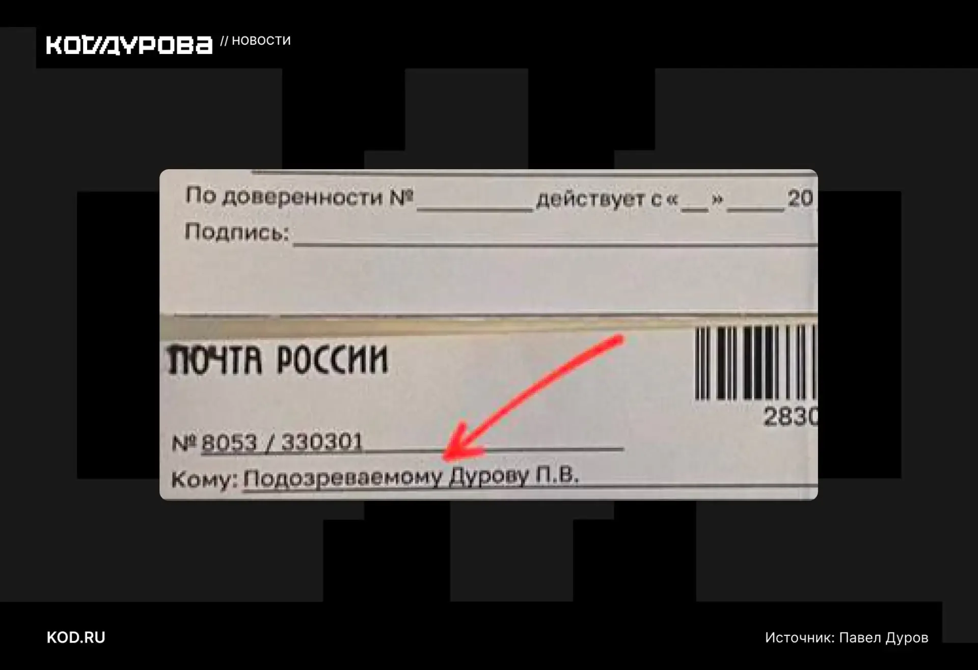 🤔 Кажется, Дурова в чём-то подозревают Основатель Telegram рассказал в своём канале о том, что ему пришла судебная повестка по месту жительства в Санкт-Петербурге. Павел Дуров пошутил, что власти подозревают его в защите статьей 29 и 23 Конституции, которые гарантируют свободу слова и право на тайну переписки. ↖️ https://kod.ru/pavel-durov-ugolovka Подписаться | KOD.RU
