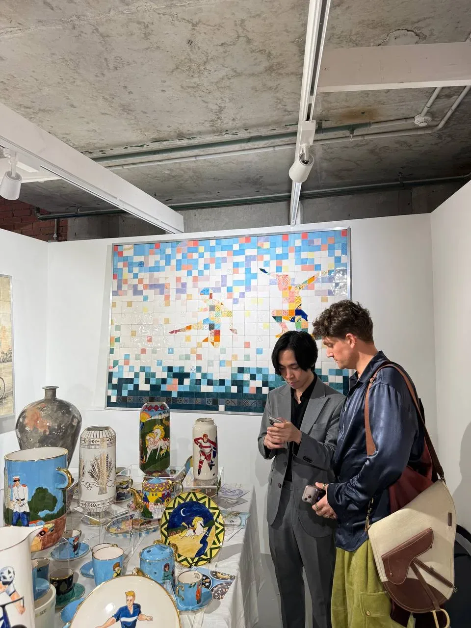Сходила вчера на Catalog! Пришла вынужденно рано, аж в 12:00 — ничего покупать не собиралась, просто у нас была экскурсия с Ксюшей Чилингаровой вместе с клубом «Моск» от «Москвички». Но, естественно, прям в первой же галерее влюбилась до беспамятства в гобелен и судорожно его забронила (расскажу о нём потом). Мне вообще на подобных ивентах городского масштаба тяжеловато: у меня жёсткий СДВГ, плюс я обожаю искусство, плюс куча знакомых вокруг, фотографов, звуков, запахов, коллег, стендов партнёров и умеренно великих людей — короче, голова кругом. Ксюша водила нас по своему маршруту любимых гал…