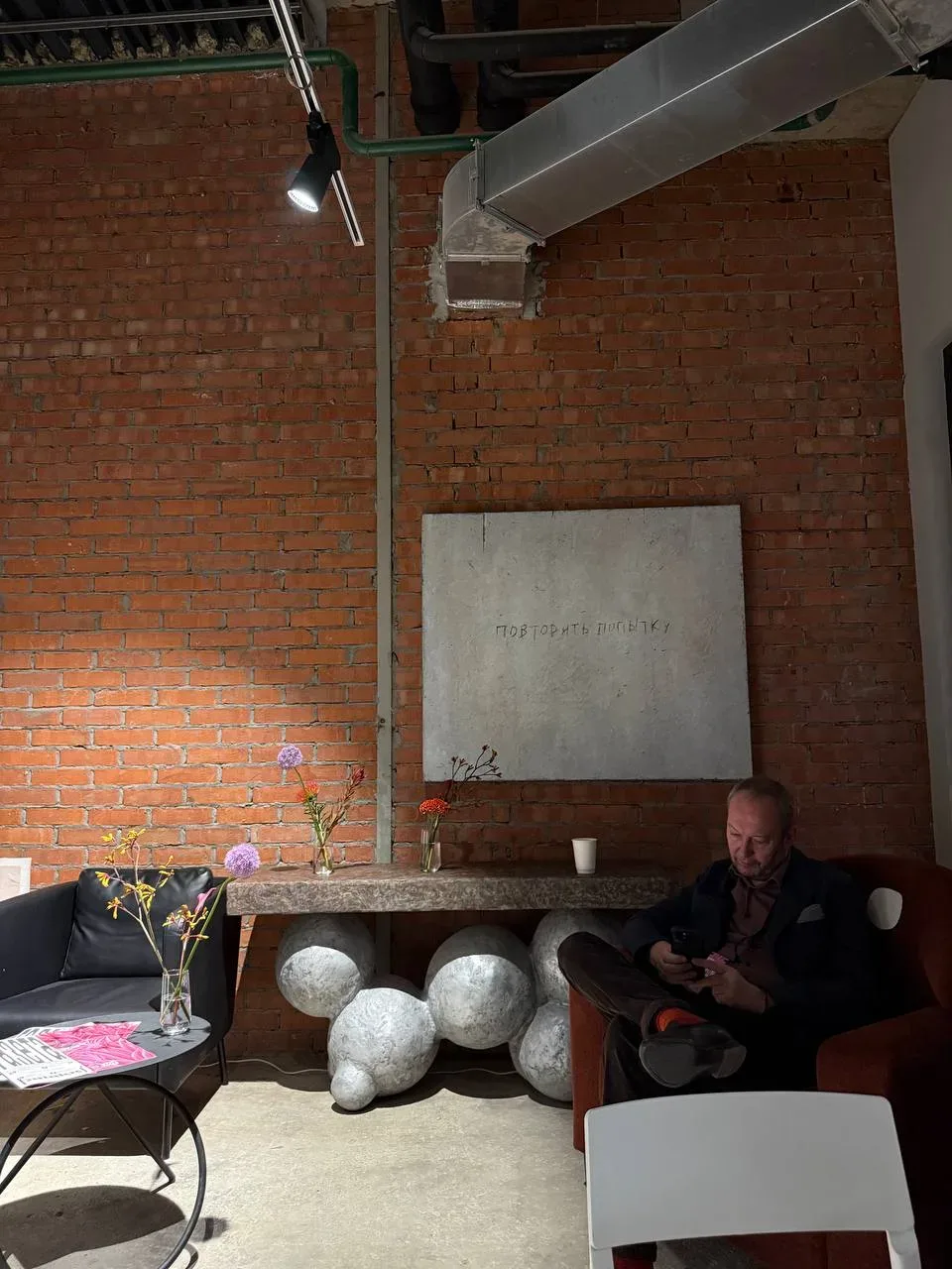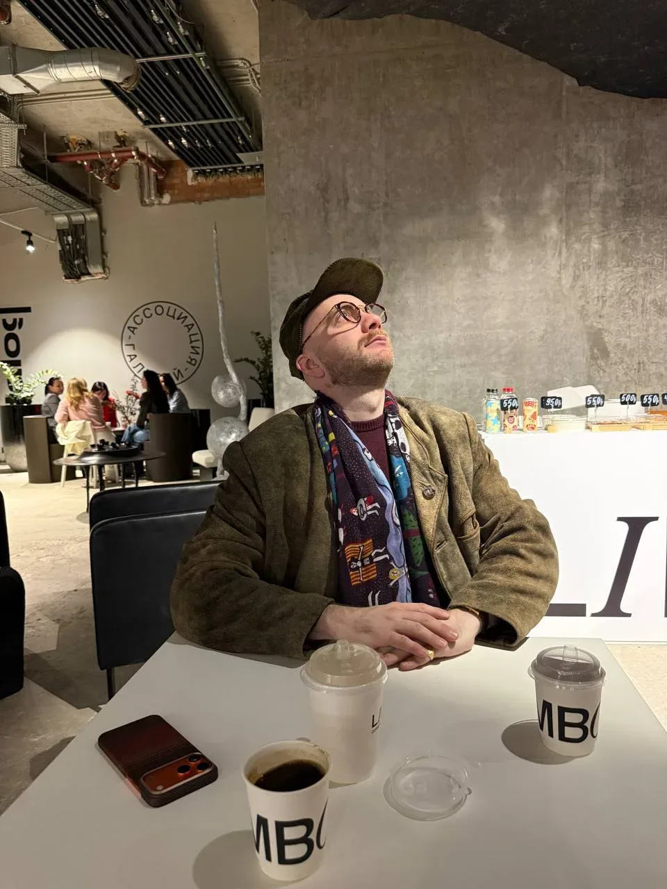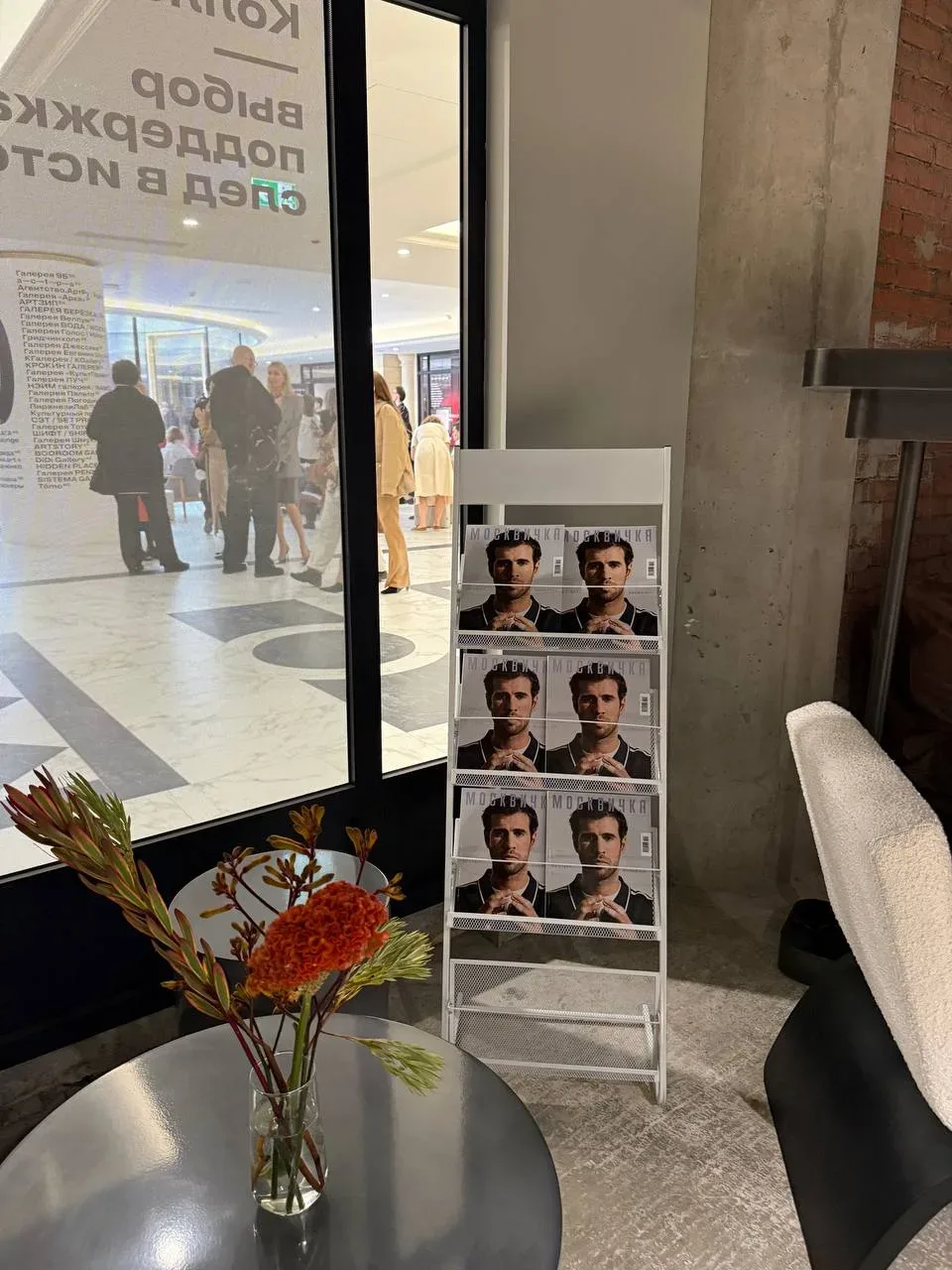 Потом сидела в «випке», контролировала раскладку журналов (мы с «Москвичкой» инфопартнёры), пила американо. Услышала за спиной разговор: — Привет, ну как дела ? — Привет! Хм, если сказать «замечательно», то можно и по морде огрести… — Ну понятно. «Всё идёт как идёт» — так сейчас говорить надо! Потом началась громкая музыка, очень кайфовая (позже узнала, что это был дэнс-перформанс Константина Матулевского от проекта РБК «Визионеры»). Выхожу в холл, там куча танцоров в аквариуме таком по центру. Зимой здесь была несимпатичная зона «Вайлдберриз». А сейчас — живой контемп. И тут поверх музыки на…