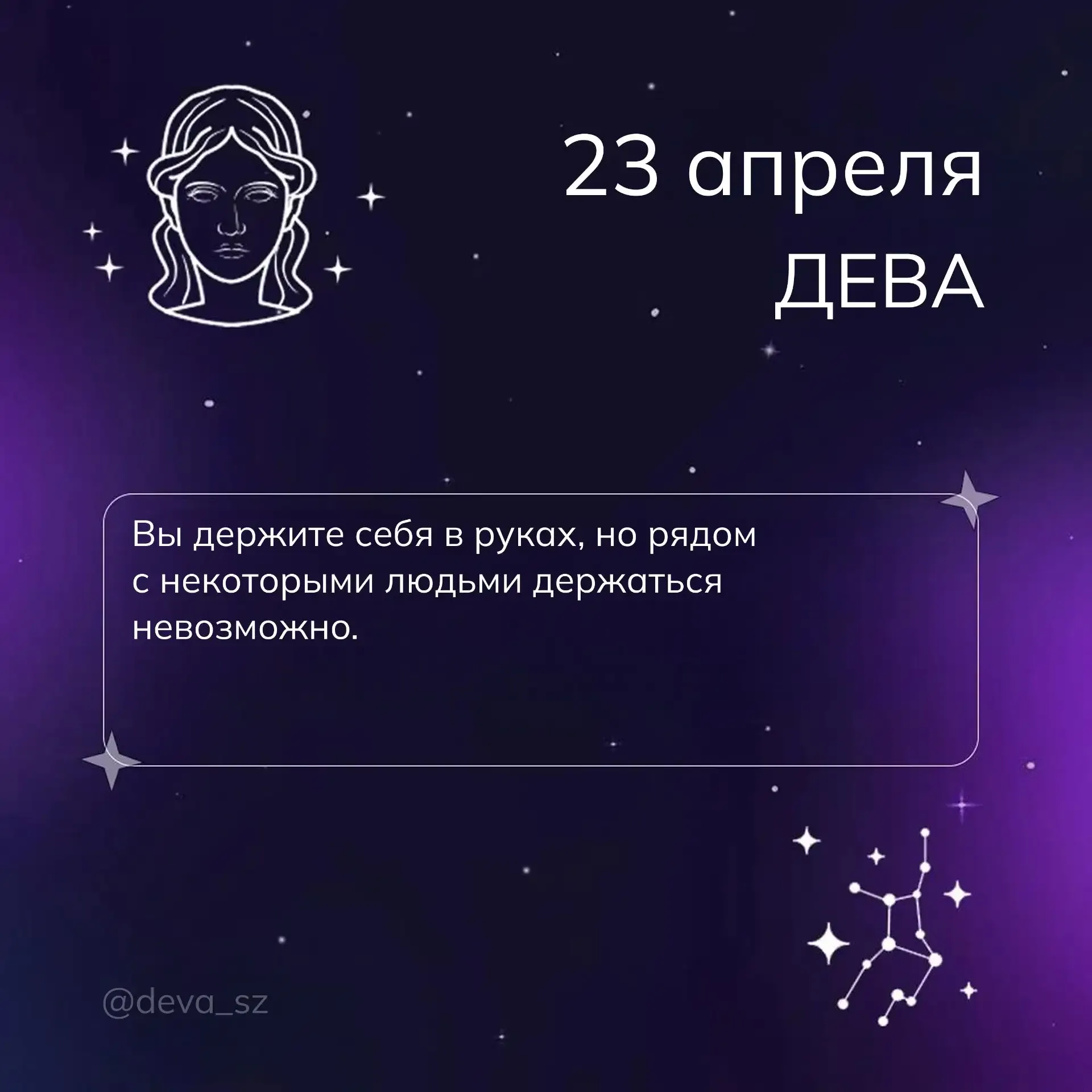 Канал @deva_sz посвящён астрологическим прогнозам для знака Девы. Здесь публикуются гороскопы на день, неделю и месяц, а также разборы планетарных аспектов и их влияния на представителей знака. Контент ориентирован на тех, кто хочет использовать астрологию для планирования дел, отношений и личного роста.