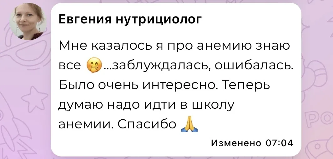👩🏼⚕️Интегративный врач терапевт 🩸Эксперт по анемии и дефициту железа 🗣преподаю в МИИН, УОМ, Uniprof 🔻консультации, вебинары https://drbarsukova.ru По рабочим вопросам +7 988 185-63-54 (whatsapp)