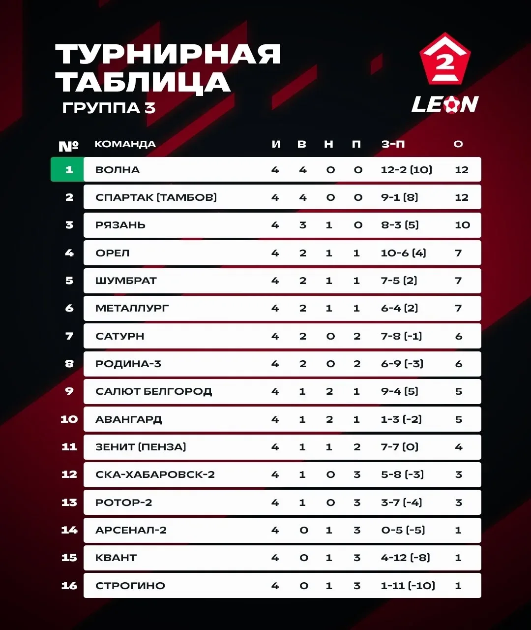 📊 Результаты матчей 4️⃣ тура и турнирная таблица