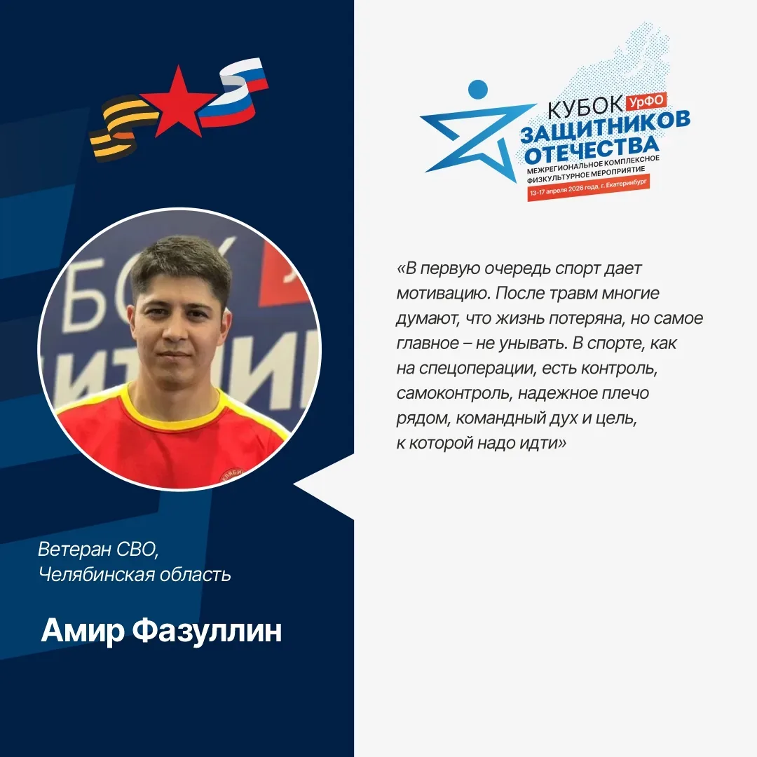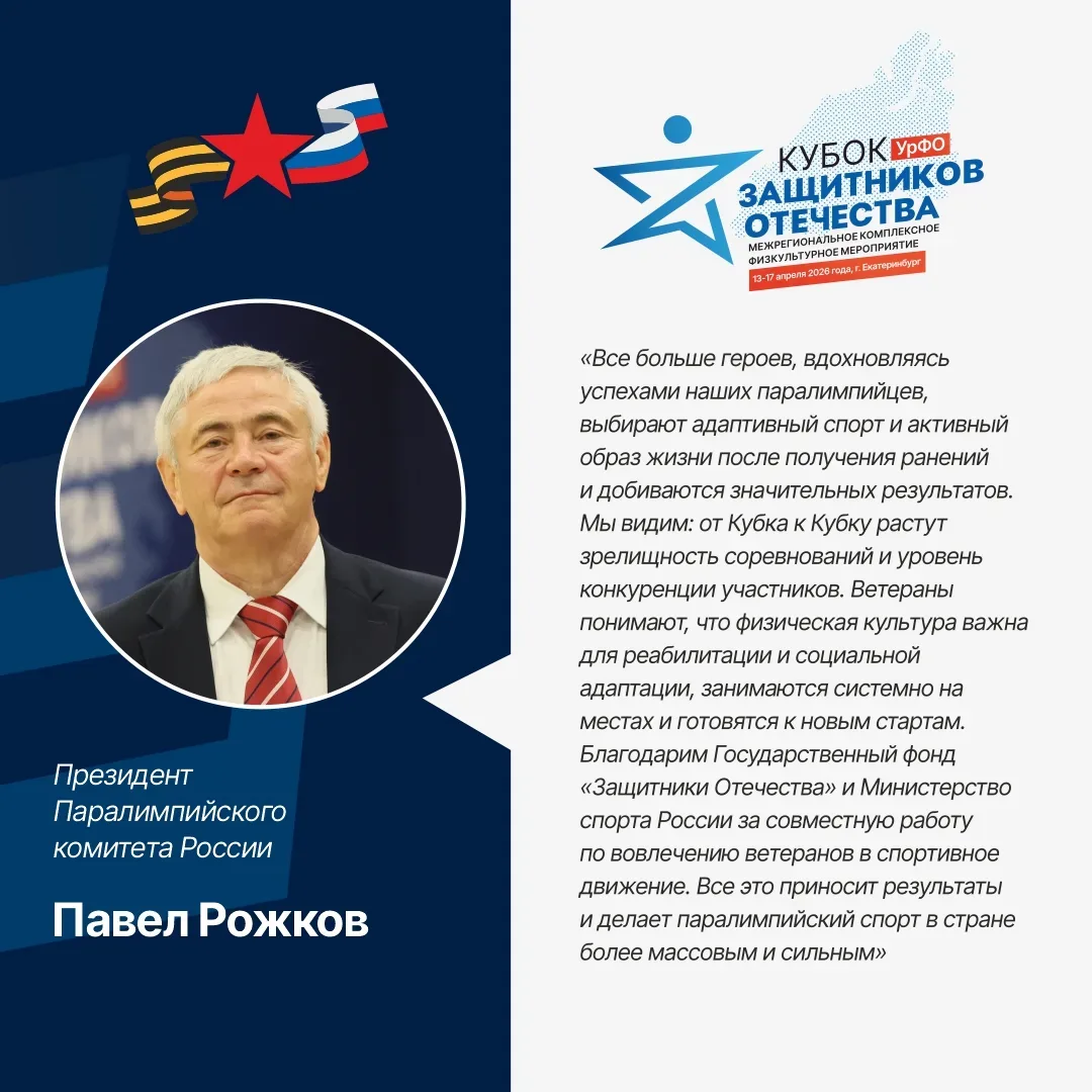 В Екатеринбурге состоялась торжественная церемония награждения победителей межрегионального «Кубка Защитников Отечества». В соревнованиях приняли участие около 100 ветеранов специальной военной операции из Уральского федерального округа. Защитники показали свои умения в соревнованиях по спорту лиц с поражением опорно-двигательного аппарата: пулевой стрельбе, стрельбе из лука, спортивному метанию ножа, настольному теннису, пауэрлифтингу, волейболу сидя, а также в дисциплинах спорта слепых: пауэрлифтинге и настольном теннисе (шоудауне). «Много внимания уделяется вовлечению ветеранов в спорт и п…