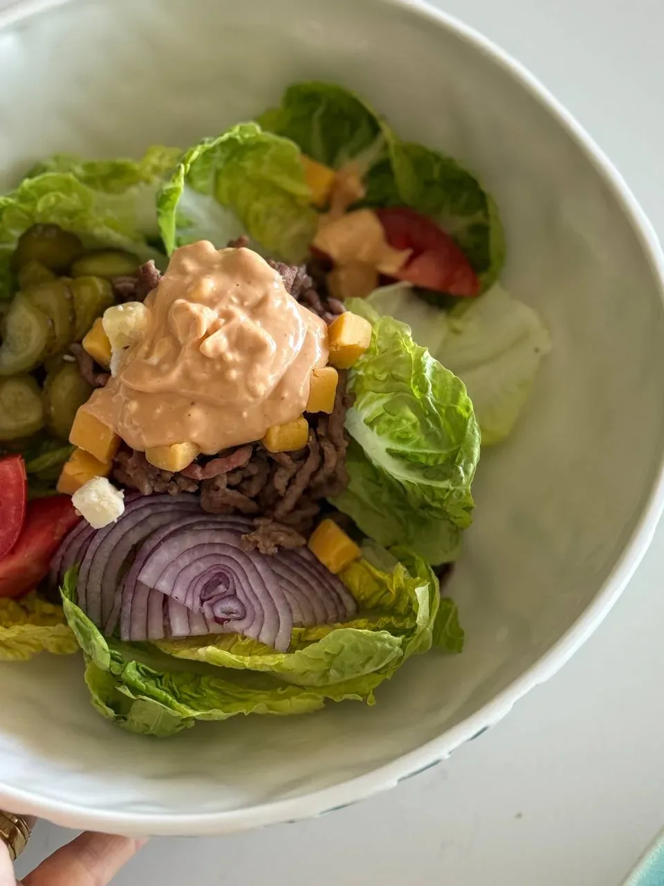 Две мясных котлеты гриль, специальный соус, сыр, огурцы, салат и лук, все на булочке с кунжутом. Только так… и это… Убираем булочки и получаем салат «Биг Мак» Обжариваем фарш. У меня из говядины. Лук, томаты, маринованные огурцы, сыр , салат Айсберг Заправка по классике: майонез, кетчуп, горчица, немного меда. У меня салат для сына- так что полный хард корд. Для пп версии- берите греческий йогурт и фарш можно из птицы. Все перемешиваем. Вкусно. Салат исчез в мгновенье ока! Впору вводить отдельный хештег - одобрено моими привередами гурманами! Канал в MAX
