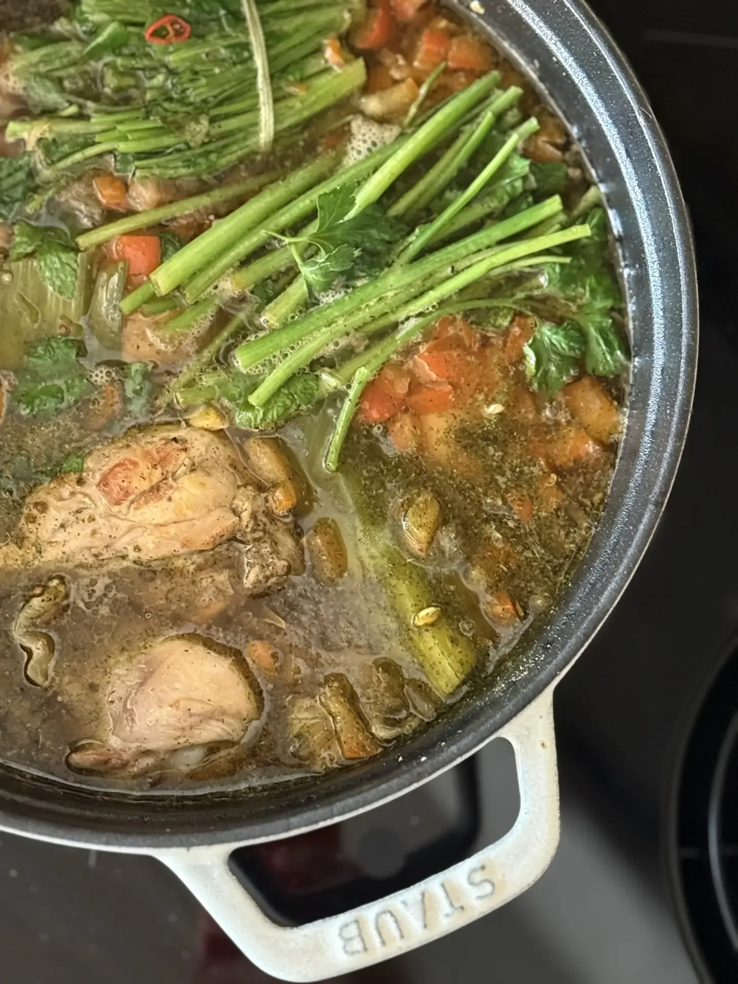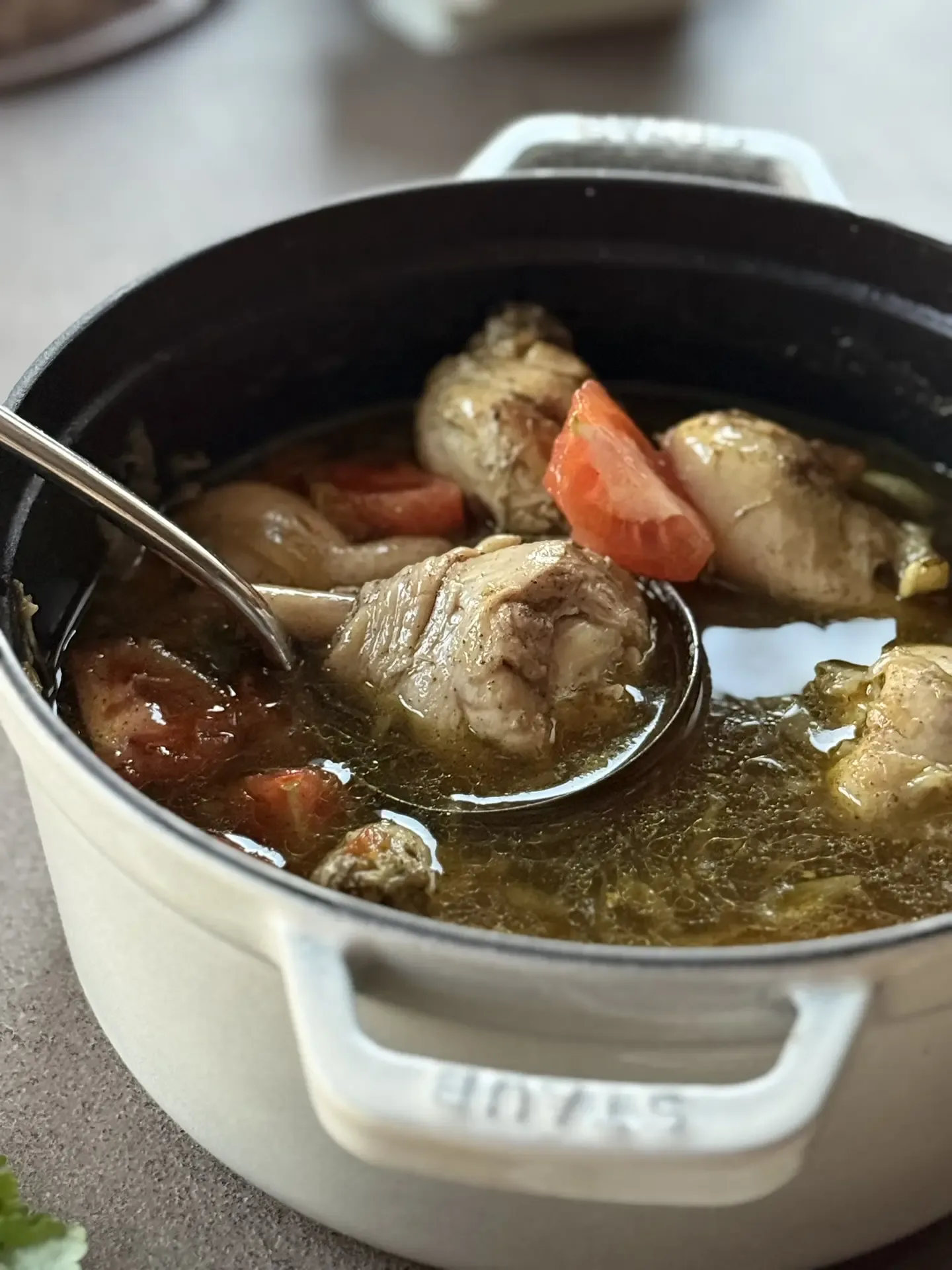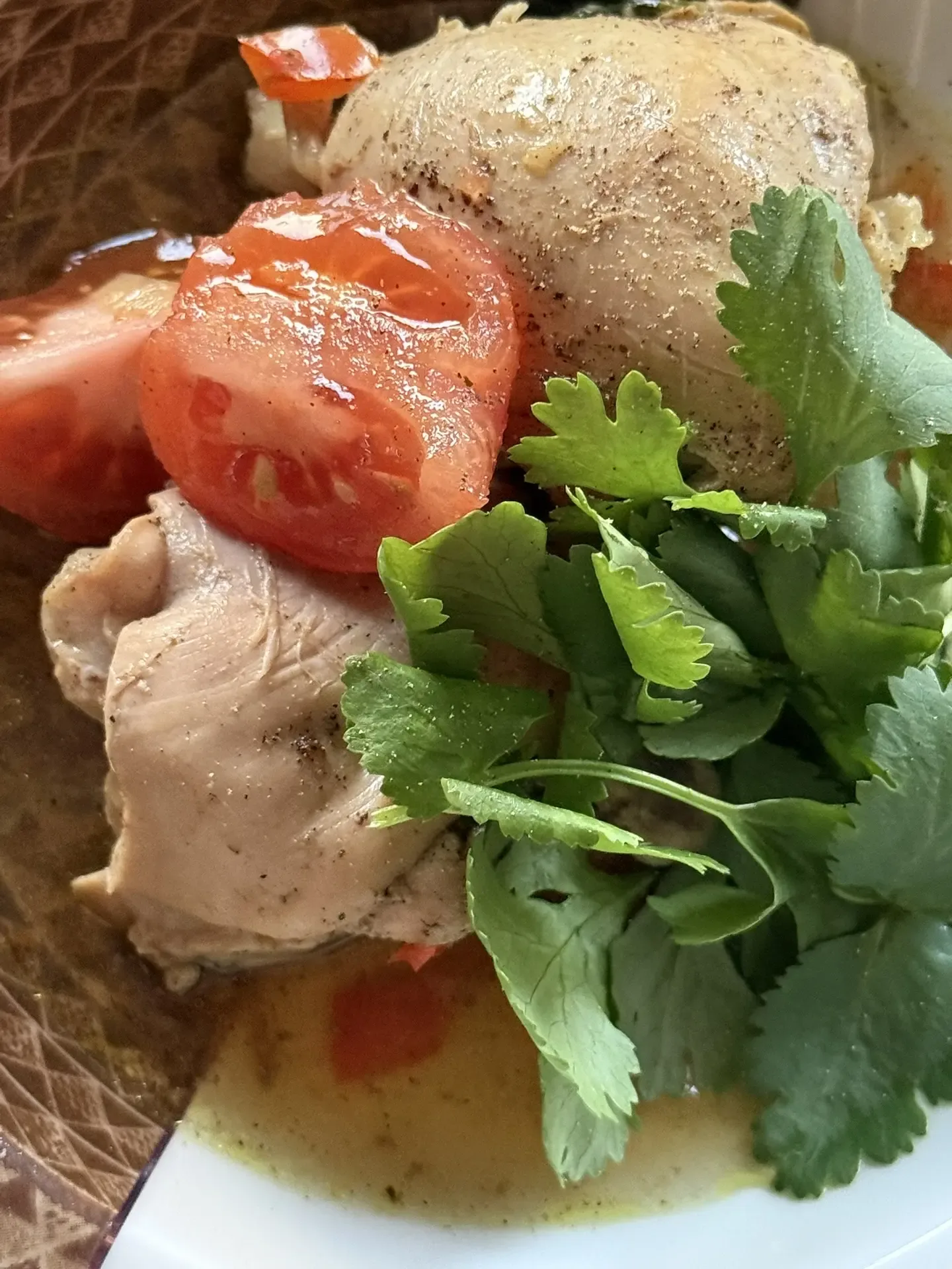 Это блюдо - моя настоящая палочка-выручалочка. Простые ингредиенты и результат, который всегда радует. Мы с супругом любим есть его с бульоном. Дети, которые уже не дети - предпочитают без. По сути нужно только одно обязательное условие - купить хмели-сунели ну и зелень Без этой смеси получится просто курица в томатах. Это тоже вкусно и имеет право на существование. Но именно хмели-сунели добавляет тот самый грузинский характер - тёплый, травяной, уютный. курица ~1 кг. лук - 1 крупный помидоры - 300-400 г. болгарский перец - опционально чеснок кинза, петрушка хмели-сунели - 5-7 г. соль - по в…