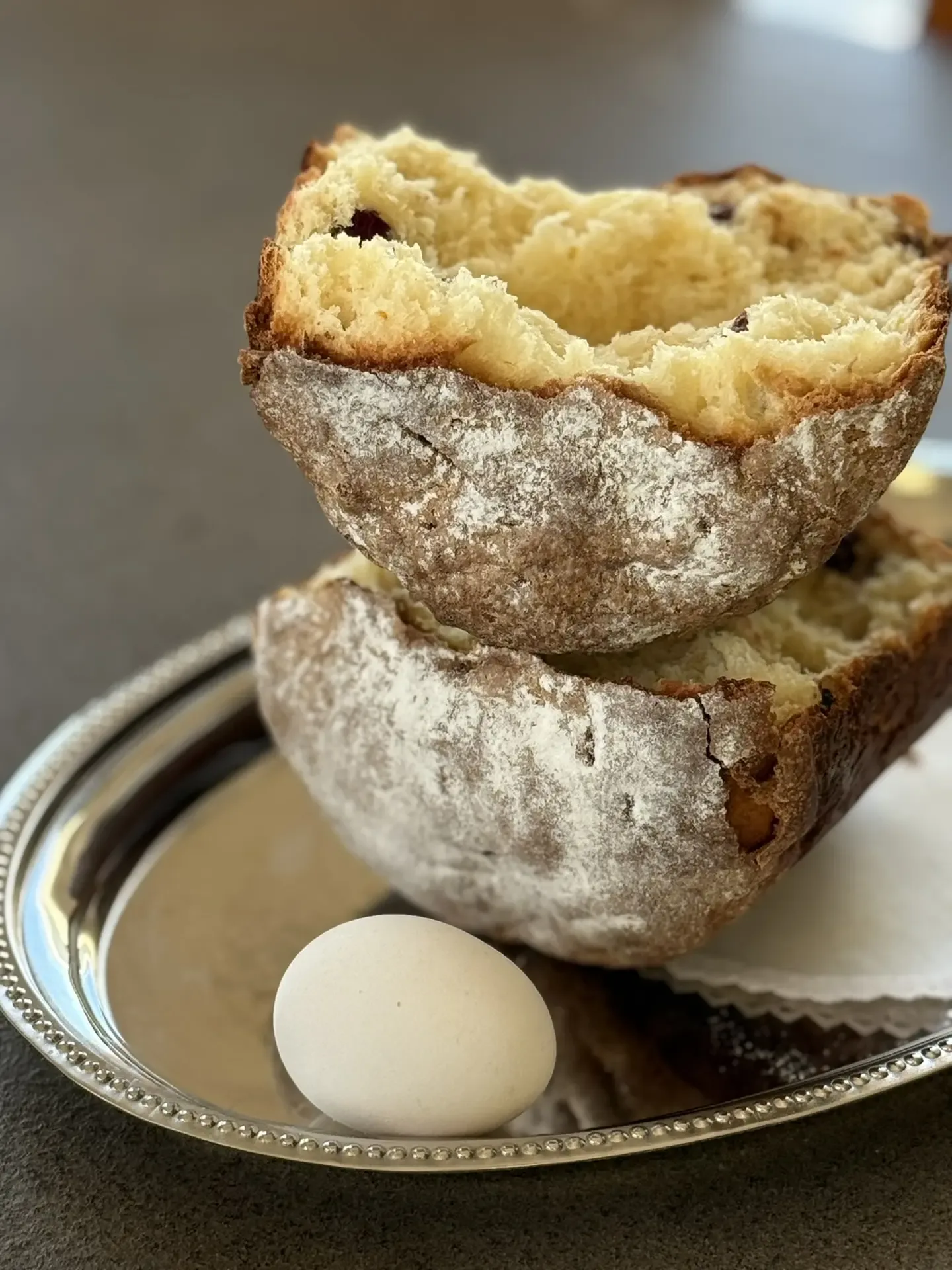 Это и не панеттоне с длинными тянущимися волокнами, и не классический кулич с плотной сдобной текстурой. У него своя- особенная текстура. Что рассказывать - пеките и делитесь своими впечатлениями и ассоциациями. На два средних кулича: Мука - 320 г.
