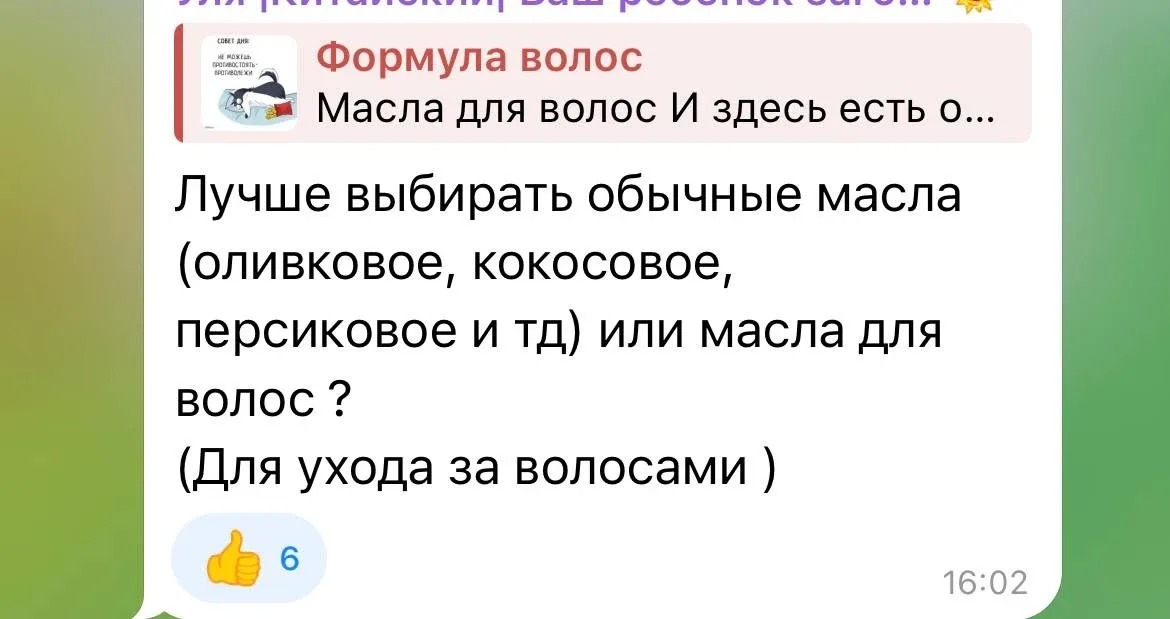 Канал «Формула волос» (@formulavoloss) полностью посвящен теме здоровья, красоты и ухода за волосами. Основная цель — предоставлять подписчикам структурированную и проверенную информацию, которая помогает разобраться в многообразии средств, процедур и методик.