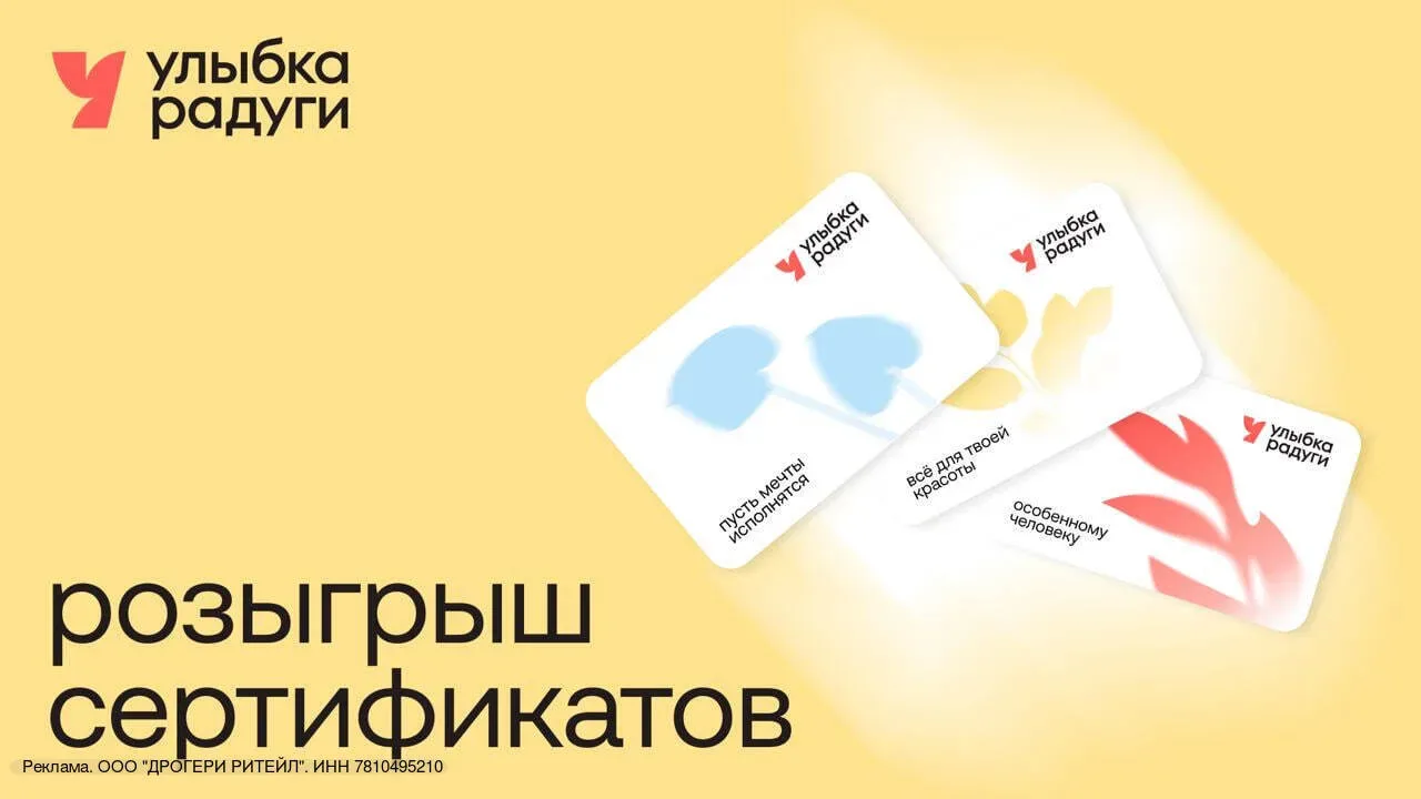 «Улыбка радуги» дарит 30 000 рублей🎁 Торговая сеть магазинов бытовой химии и косметики «Улыбка радуги» запускает масштабный розыгрыш 10 сертификатов на любые покупки: ✨ 1-4-е место — по 4000 рублей; ✨ 5-7-е место — по 3000 рублей; ✨ 8-9-е место — по 2000 рублей; ✨ 10-е место — 1000 рублей. Для участия нужно: ✅Перейти по ссылке → в бота ✅Нажать start / запустить ✅Пройти регистрацию участника розыгрыша 10 победителей выберут 30 апреля с помощью рандомайзера на канале в МАХ «Улыбка радуги». Бонусом, все новые участники программы лояльности, которые подпишутся на канал, получат скидку 25% на любы…