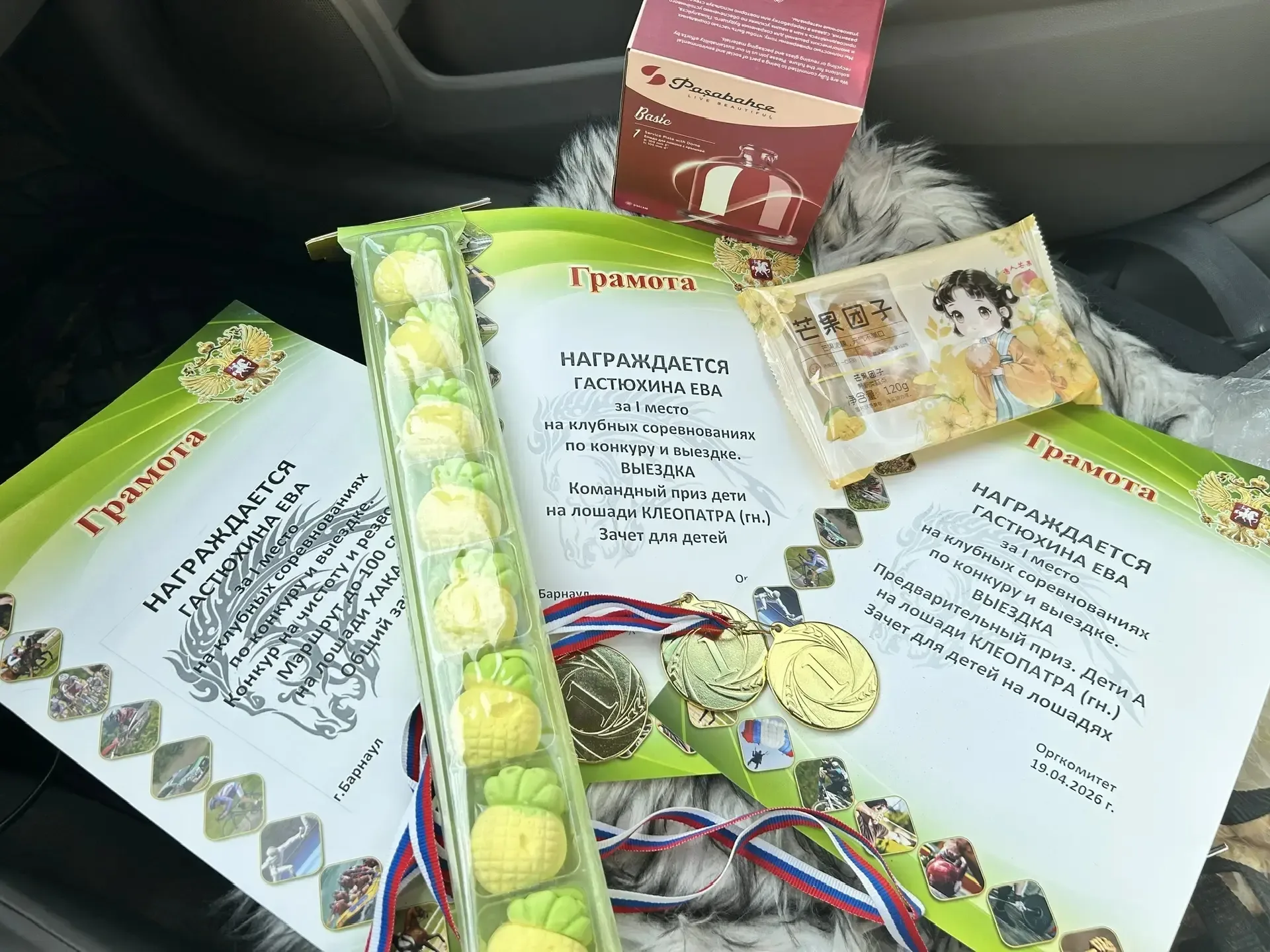 Сегодня мы хотим от всей души поздравить ученицу нашей школы Гастюхину Еву с новыми достижениями на клубных соревнованиях по конкуру и выездке! 🥳 Ева показала выдающиеся результаты, завоевав 1 место сразу в нескольких дисциплинах: Конкур на чистоту и резвость на маршруте до 100 см на лошади Хака! Это требует не только мастерства, но и полного взаимопонимания с партнером. Выездка – командный приз в категории "Дети" на лошади Клеопатра! Командная работа и гармония – залог успеха! И еще одно 1 место в выездке – предварительный приз в категории "Дети А" также на лошади Клеопатра! Золотые медали, …