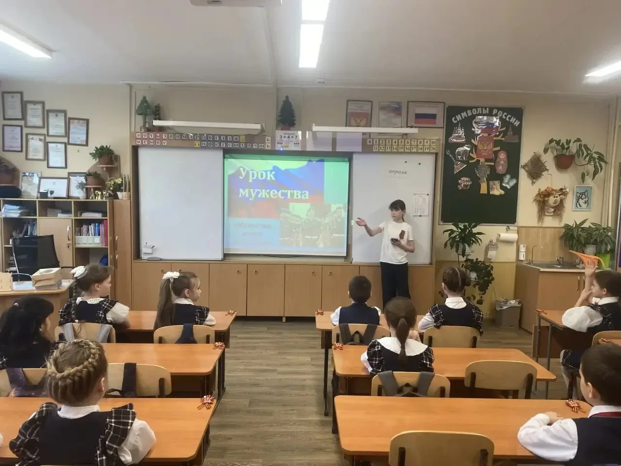 #ДеньПобеды2026 Урок мужества «Горячее сердце: когда подвиг становится нормой» 🙌 23 апреля в 3Г классе прошел урок Мужества. Этот урок вместе с классным руководителем - Татьяной Владимировной Бредихиной провела вожатая - Алиса Андрюкова, учащаяся 5В класса. Ребята говорили о том, что делает человека Человеком: о смелости, неравнодушии и готовности прийти на помощь. Третьеклассники узнали, что героизм - это не всегда что-то грандиозное. Часто это ежедневный, тихий труд во благо других. Именно поэтому девиз урока - «Подвиг как норма жизни». В завершение урока мужества ребята пришли к главному в…