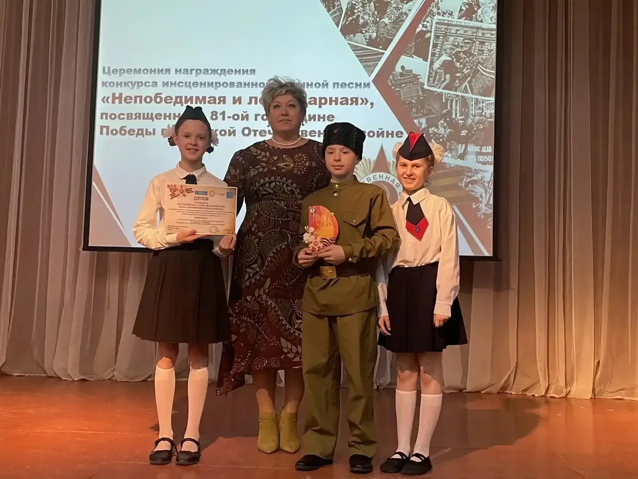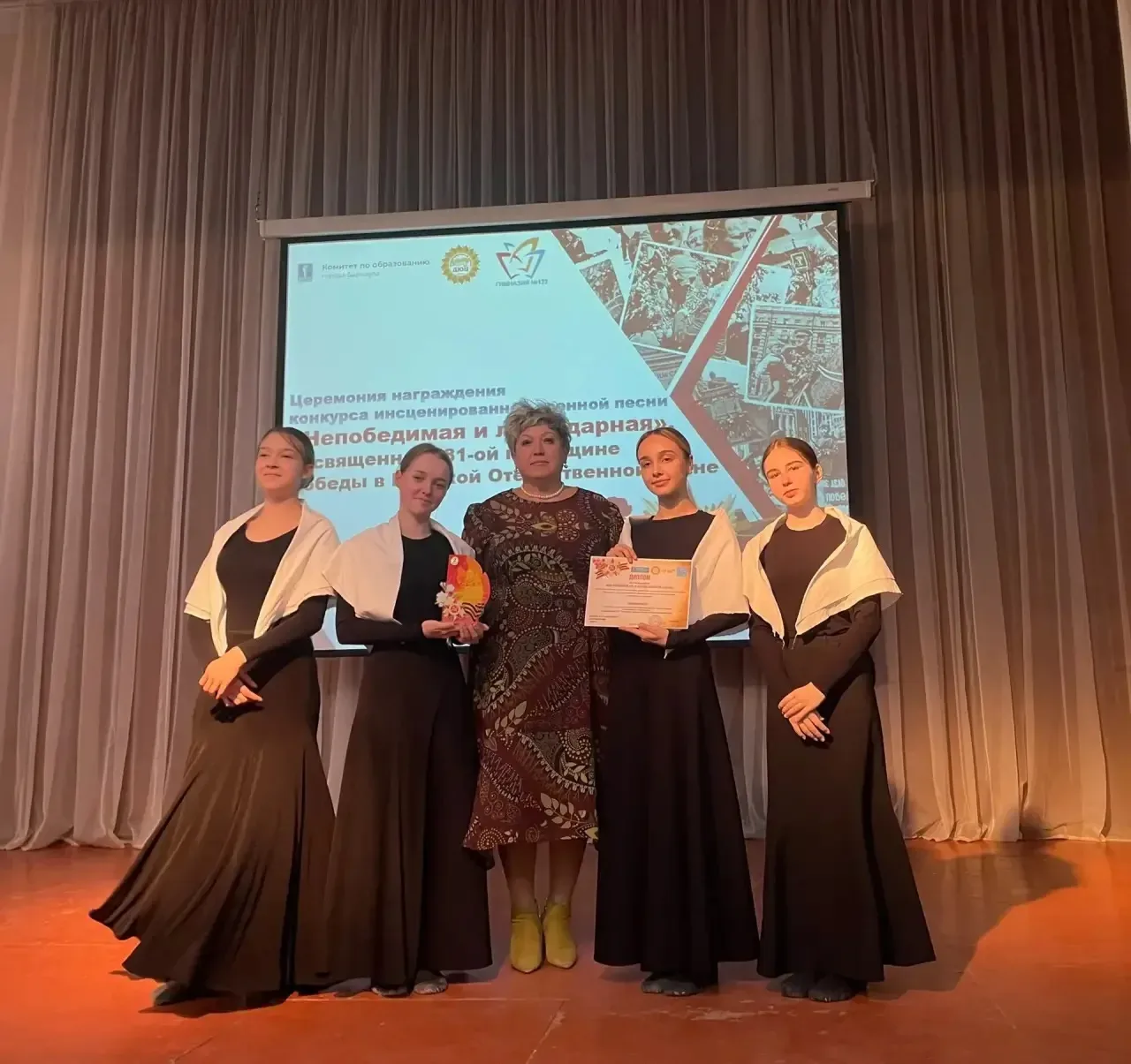 #НепобедимаяиЛегендарная Сегодня в гимназии прошел гала-концерт открытого городского конкурса инсценированной военной песни «Непобедимая и легендарная»! ✨ Свои лучшие по мнению жюри композиции представили школы города на сцене актового зала гимназии. Эти номера органично вплелись в спектакль, посвященный Великой Отечественной войне. А после - награждение призеров и победителей конкурса. И Гимназия 123 в их числе: 🔸 Дипломом за 🥇 место награждены вокальный коллектив «Ассоль» и хореографический коллектив «Карамельки»; 🔸 Дипломом за 🥉 место награжден хореографический коллектив «Элегия» 🔸 Диплом …