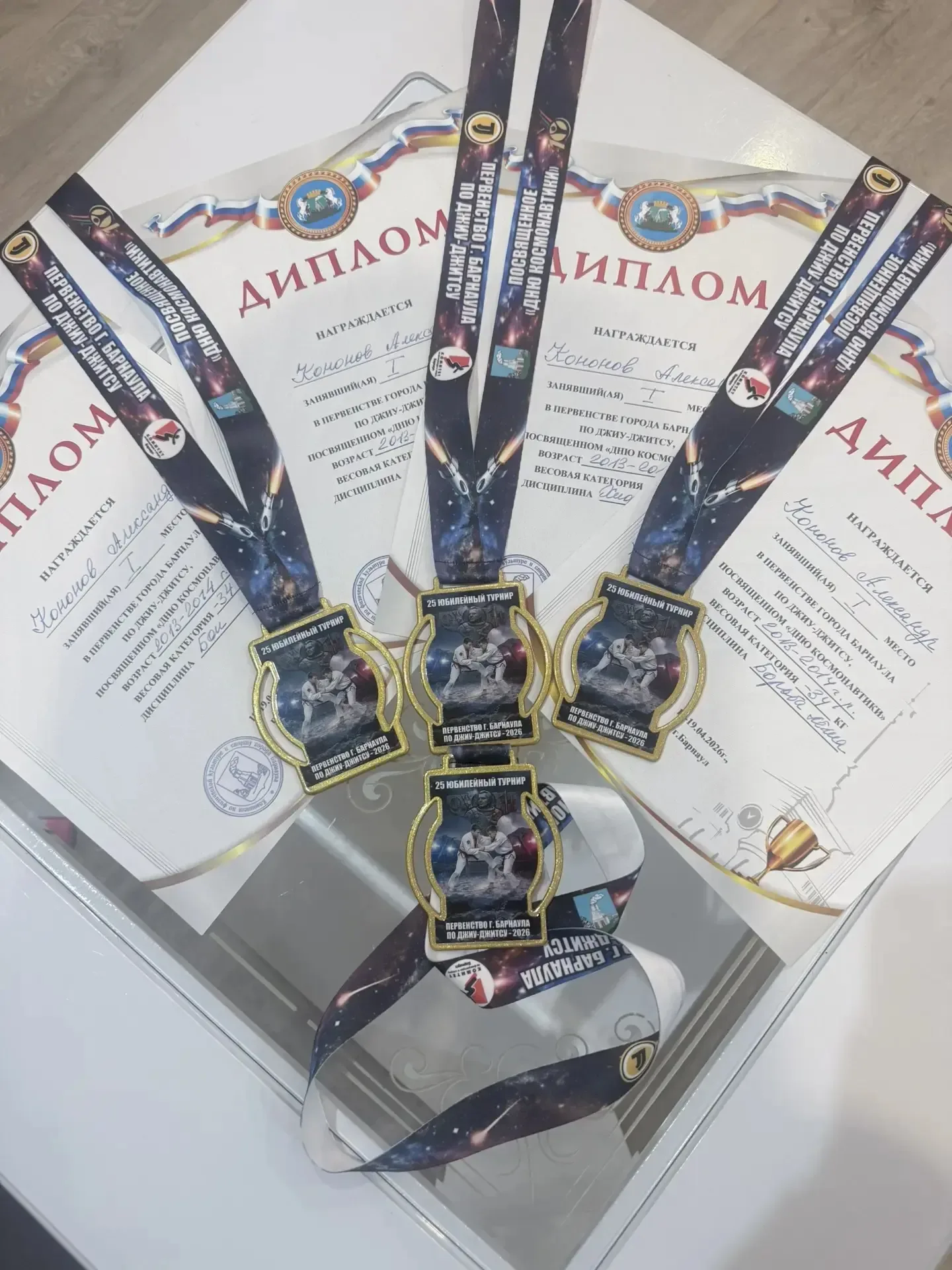 Новости спорта🏆 Дополнения 2го дня 25 юбилейного турнира Кубока имени Германа Титова. Кононов Александр, ученик 6 «Г» класса МБОУ "СОШ №102", плюс две золотые медали🥇 в дисциплинах Ноги и Файтинг(бои) в Первенстве г.Барнаула по Джиу-джитсу, посвящённому "Дню космонавтики", в своём весе! Желаем Александру дальнейших успехов и новых побед! #СОШ102Барнаул