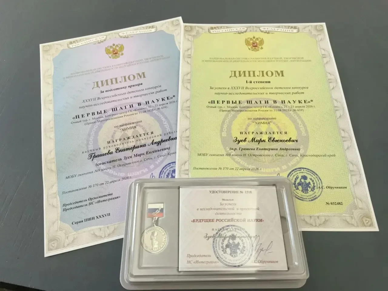 🏆 Гордость гимназии — наша сила в талантливых учениках и вдохновляющих наставниках! На XXXVII Всероссийском детском конкурсе научно-исследовательских и творческих работ «Первые шаги в науке» ученик гимназии Зуев Марк одержал безусловную победу в направлении «Химия»! 🏆 Марк награждён дипломом I степени и медалью «Будущее Российской науки» за высокие достижения в исследовательской и проектной деятельности. Это результат упорного труда, любознательности и настоящего научного интереса. Особые слова благодарности и поздравления — наставнику победителя, Грашевой Екатерине Андреевне. Ваш профессиона…