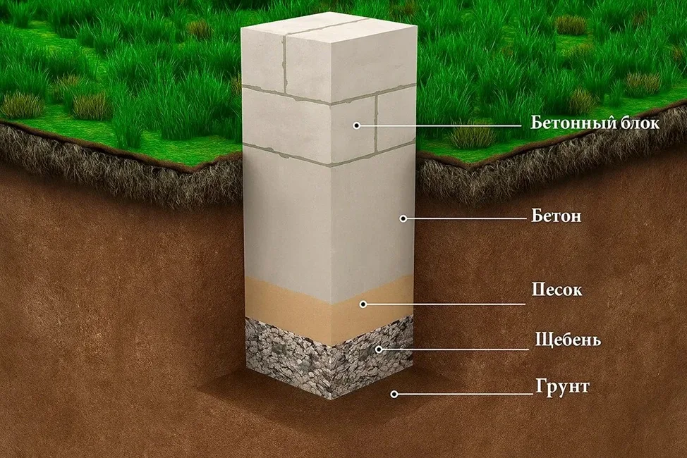 Столбчатый фундамент: для лёгких построек Столбчатый фундамент — самый экономичный вариант. Он представляет собой отдельные столбы, заглублённые ниже точки промерзания, на которые опираются стены. Этот тип фундамента подходит только для очень лёгких построек: каркасных домов, бань, веранд, сараев. Кирпичный или газобетонный дом на столбах не построить — стены треснут от неравномерной осадки. Столбы делают из бетона, кирпича, блоков или асбестоцементных труб, залитых бетоном. Шаг между столбами — 1.5–2.5 метра, обязательно под углами и пересечениями стен. Главная проблема столбчатого фундамент…