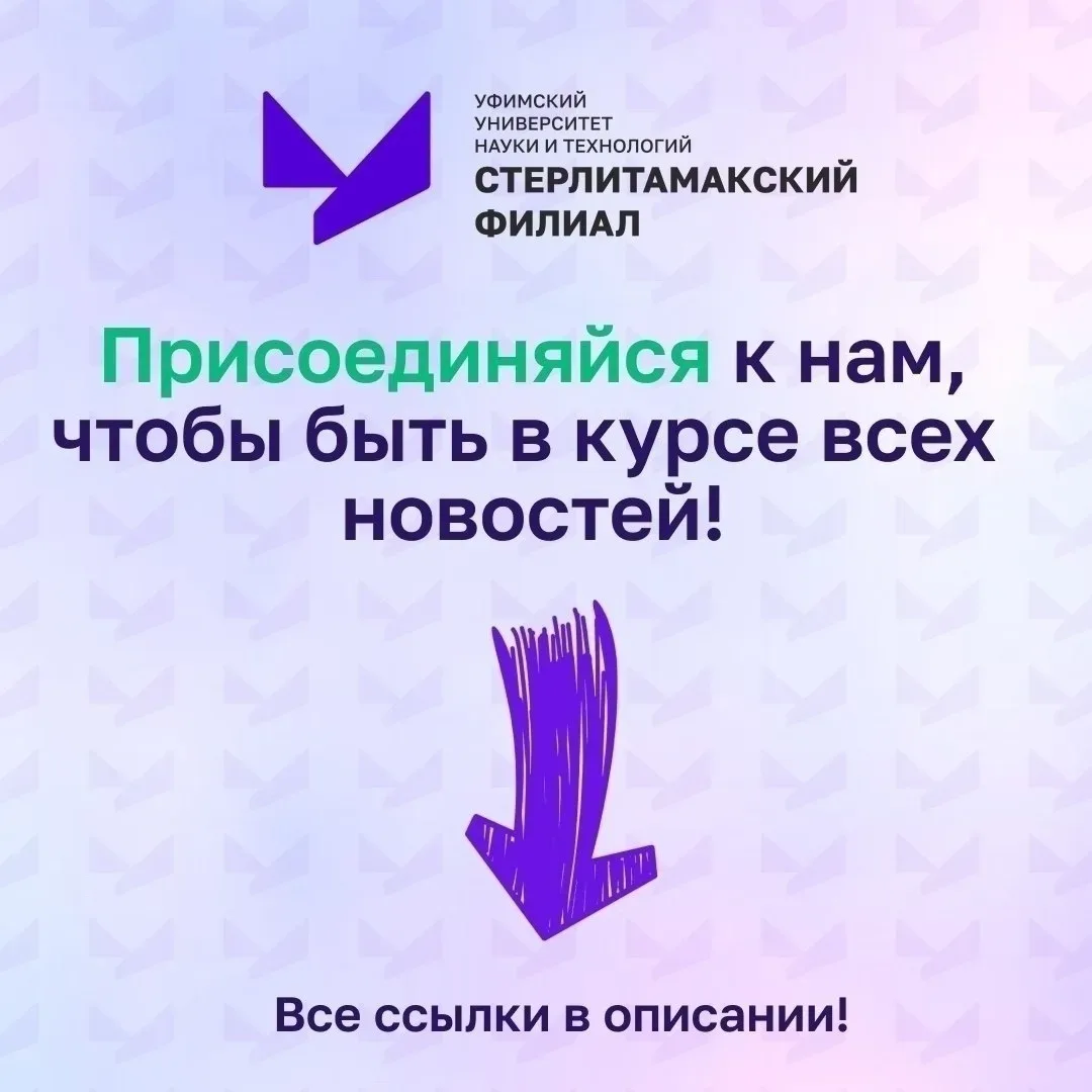 Канал @id274975591_gos5 (МАХ) создан для студентов, абитуриентов и сотрудников Стерлитамакского филиала Уфимского университета науки и технологий. Здесь публикуются официальные новости, информация о мероприятиях, учебном процессе и внеучебной жизни филиала.