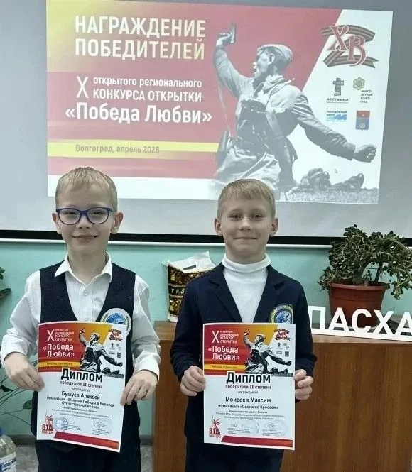 Сегодня, 24 апреля 2026 года в стенах центра "Встреча" в торжественной обстановке были награждены победители X открытого регионального конкурса открытки "ПОБЕДА ЛЮБВИ". Ученики 1В класса Бушуев Алексей и Моисеев Максим участвовали в номинациях "81-я годовщина Победы" и "Своих не бросаем". В открытках использовались разные техники от объемных цветов до открывания танковых люков. В открытки вложены тепло, уважение и даже изображён домашний уют. Из более чем 700 открыток участников со всего региона творчество наших первоклассников было оценено жюри. Бушуев Алексей и Моисеев Максим награждены дип…