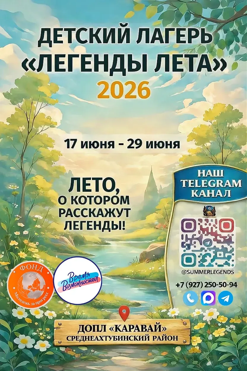 Команда «Легенды Лета» с радостью объявляет набор на новую лагерную смену! 🗓17.06.2026 — 29.06.2026 🏕 Наш лагерь снова открывает двери для ребят, которые готовы к настоящим приключениям, новым друзьям и истории, о которой хочется рассказывать снова и снова. ✨Что будет: • динамичные игры и квесты каждый день • командные соревнования и творческие мастер-классы • много активностей, в том числе сап-сёрфинг и байдарки • вечерние мероприятия • новые знакомства и дружба на всю жизнь и многое другое, что делает ЛЕТО по-настоящему легендарным 📌 Это смена для тех, кто хочет: ✔️ весело и ярко провести в…