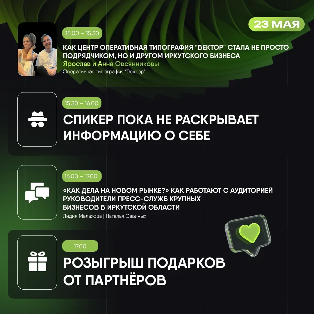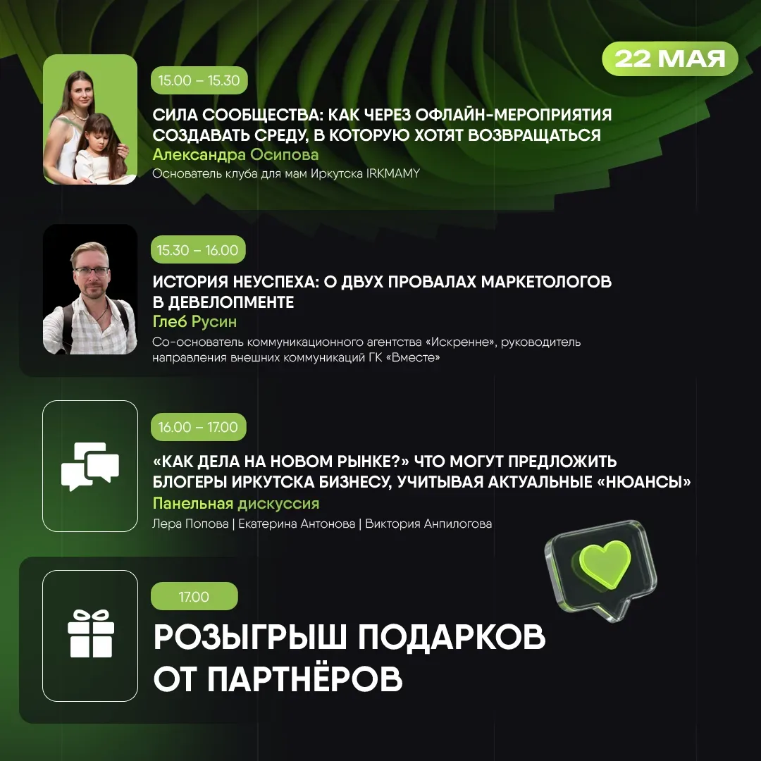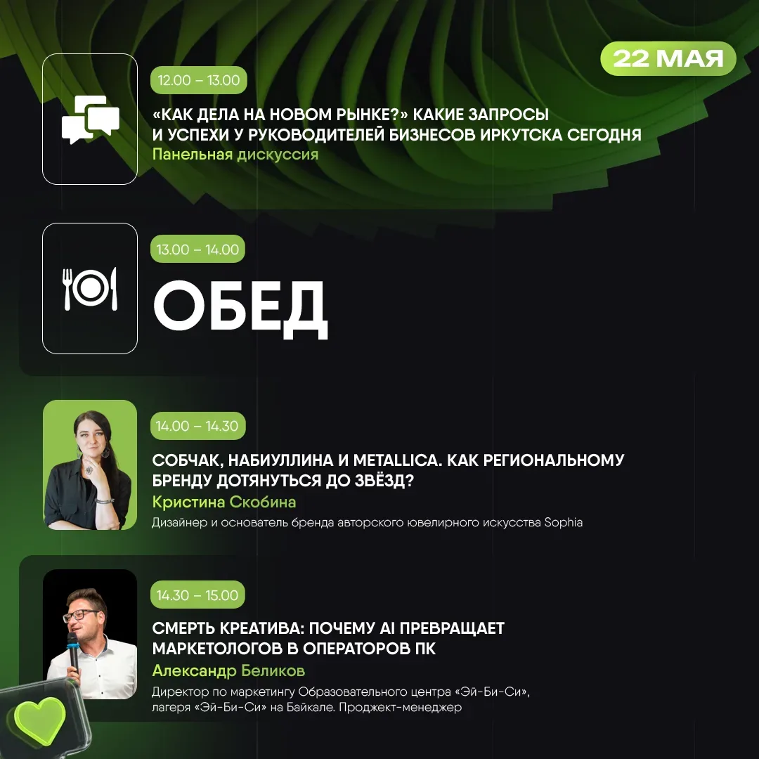 Контент будет интересен жителям Иркутска и области, которые хотят быть в курсе локальных событий и бизнес-инициатив. Также канал полезен предпринимателям, ищущим вдохновение или контакты в регионе, и туристам, планирующим поездку в Сибирь и желающим узнать о ней из неофициальных, но компетентных источников.