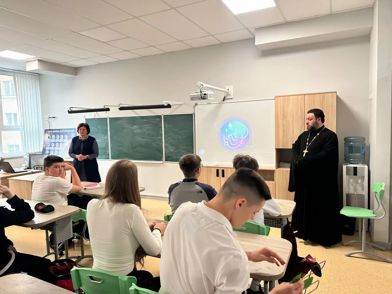 🧬 МБОУ СОШ №1 Королёв 23 апреля в 9 «А» классе прошёл тематический урок по биологии на тему «Твоя жизнь до рождения» 👏🏻 📍 Занятие было направлено на формирование осознанного отношения к вопросам жизни и развития человека Урок провели: учитель биологии Кулькова Т.С и Алексий Николаевич Шумейко, иерей, настоятель храма преподобного Сергия Радонежского и мученика Валентина в городе Королёв 💡 В ходе занятия были затронуты важные темы, связанные с развитием человека до рождения, а также нравственными и жизненными ценностями #МБОУСОШ1Королёв