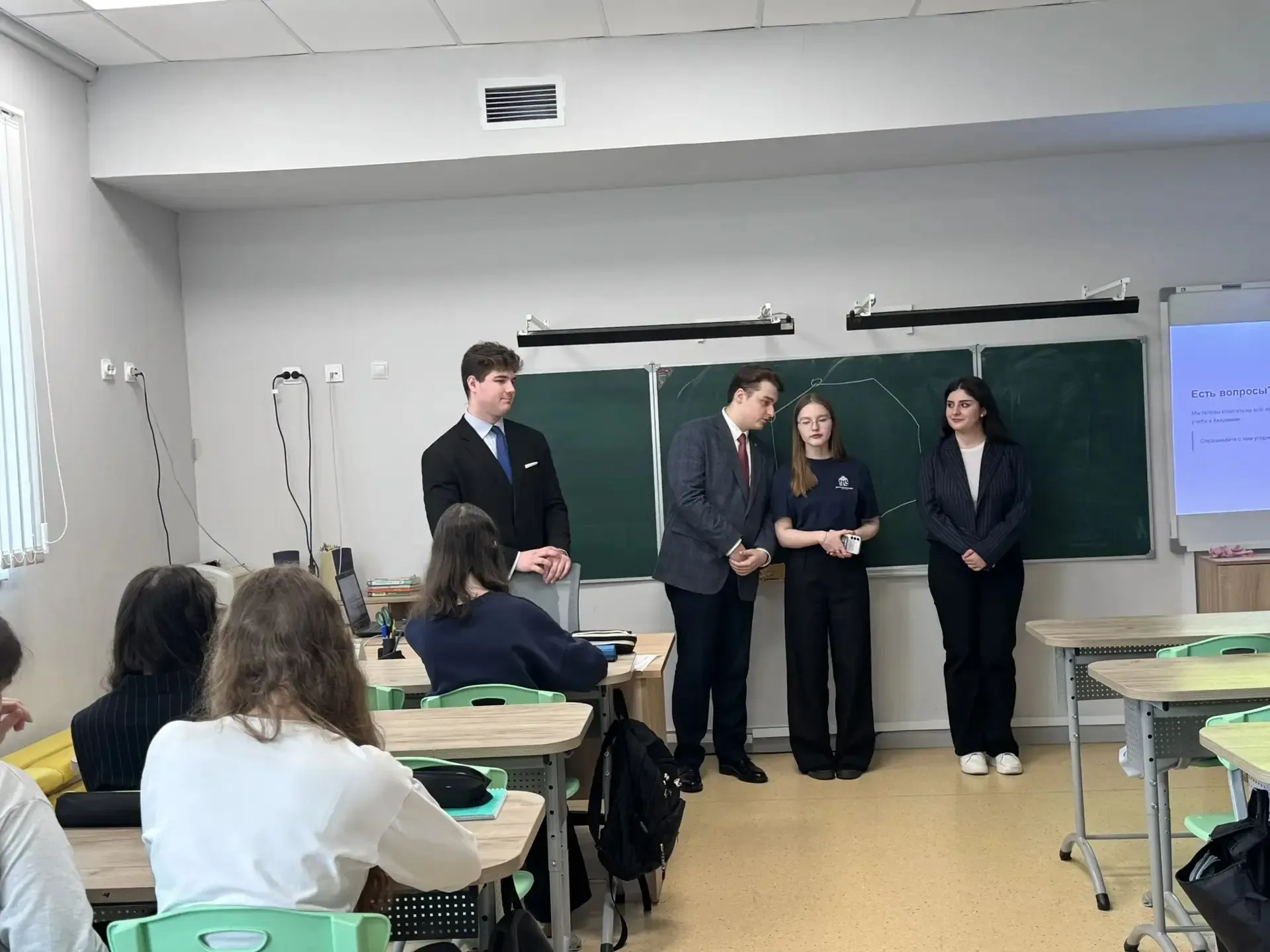 🎓 МБОУ СОШ №1 Королёв В нашей школе состоялась встреча для учеников профильных предпринимательской и медиа групп 10-х классов со студентами Московского государственного института международных отношений (МГИМО) 👏🏻 📍 Во встрече принял участие выпускник нашей школы 2025 года — Стародубов Ярослав, который сегодня обучается на факультете международных отношений. Студенты поделились своим опытом обучения: рассказали о студенческой жизни, особенностях учебного процесса, трудностях и возможностях, а также о подготовке к ЕГЭ и поступлению. ✦ Ребята узнали о преимуществах обучения в МГИМО ✦ получили п…