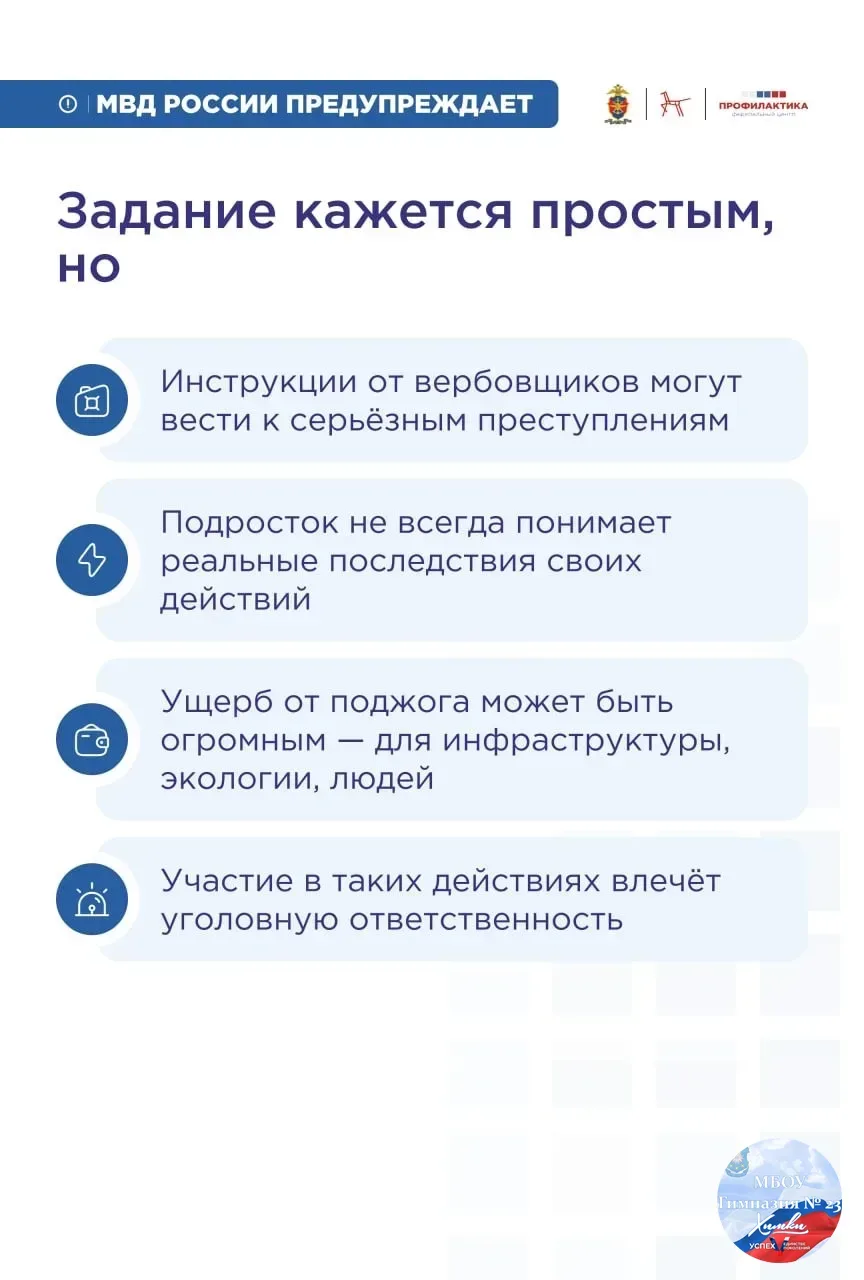 Продолжаем рассказывать о мерах безопасности: МВД России предупреждает... Подробности на карточках👆 🔒Берегите себя и своих близких! #МБОУГимназия23Химки #ХимкиОбразование #Безопасность #ПрофилактикаПреступлений #ИнформационнаяБезопасность #МВДРоссии #ГОД_ЕДИНСТВА_НАРОДОВ_РОССИИ_2026 #НавигаторыДетства #Росдетцентр #ГоспабликиМО