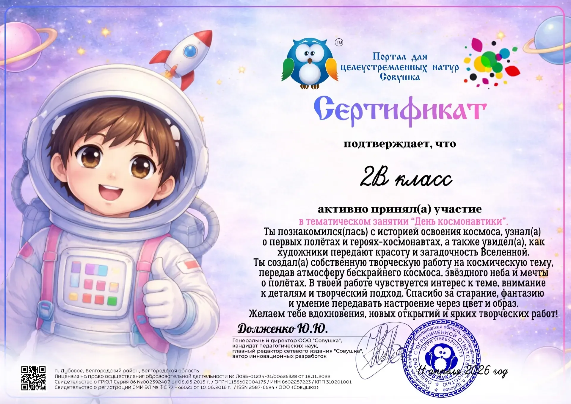 🚀 Орлята из 2 "В" класса провели настоящую "Космическую неделю", полную удивительных открытий, творческих экспериментов и, конечно же, веселья! 🌌 Каждый день был посвящен новым граням космоса, и ребята с энтузиазмом погружались в мир планет, звезд и загадочных галактик. Мы не просто изучали, мы действовали, создавали и мечтали о покорении бескрайних просторов Вселенной! Вот лишь некоторые из наших космических приключений: 🪐Рисунки и аппликации на тему космоса: Наши юные художники воплотили свои представления о космосе на бумаге. Мы видели яркие ракеты, таинственные черные дыры, дружелюбных ин…