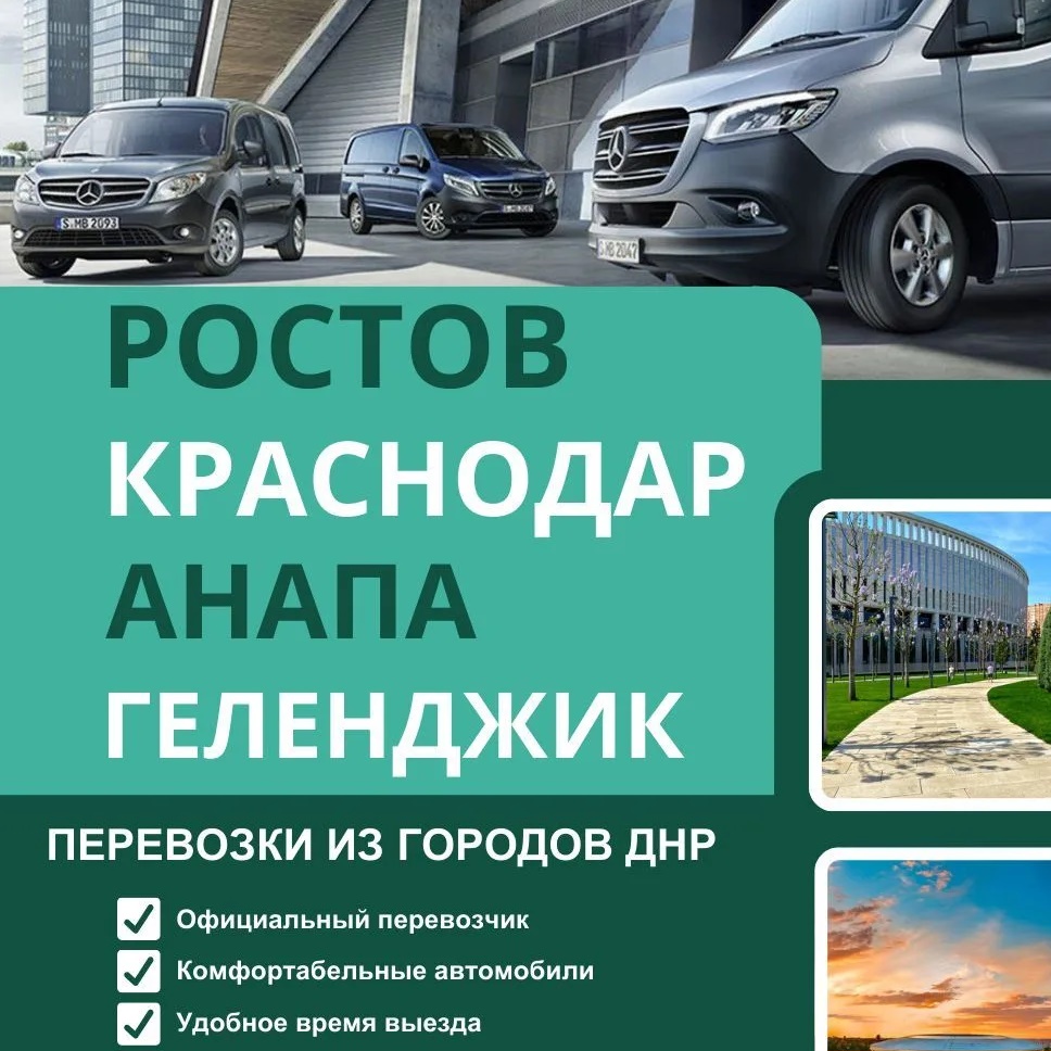 Ежедневные пассажирские перевозки из городов ДНР в Ростов, Краснодар, Анапу, Новороссийск, Геленджик и другие города Краснодарского края. Официальный перевозчик, опытные водители, комфортабельные автомобили, документы д…