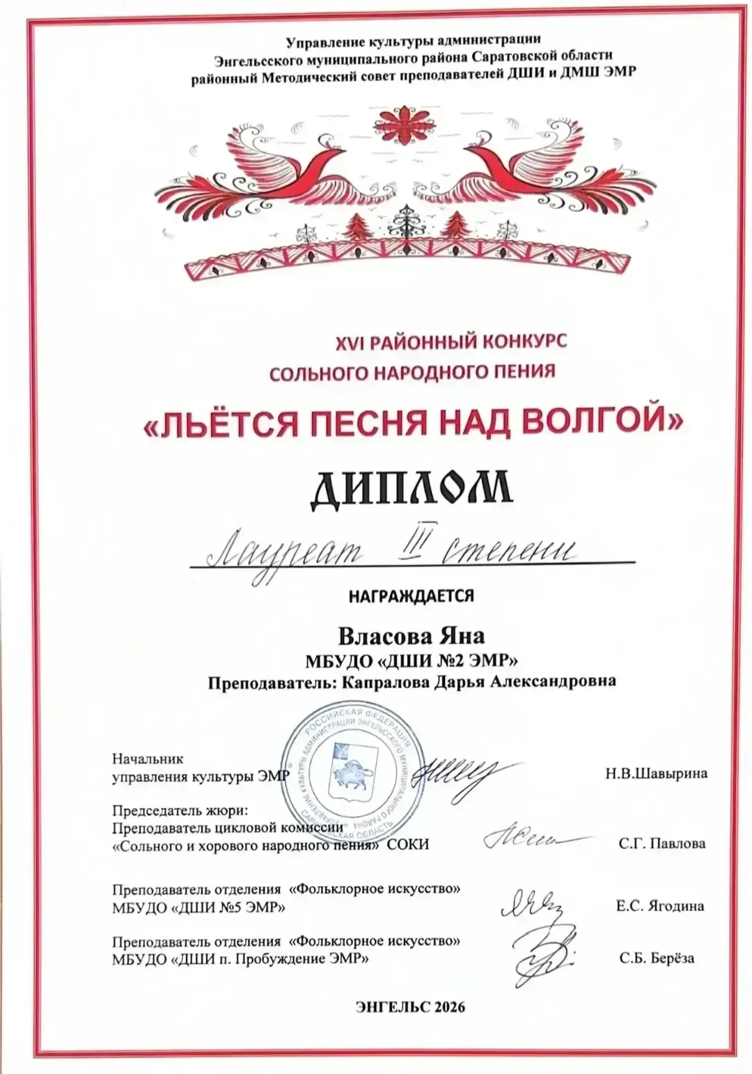 Поздравляем Власову Яну, талантливую обучающуюся 4 «Г» класса, с великолепным достижением! ✨ Яна приняла участие в XVI районном конкурсе сольного пения «Льется песня над Волгой» и по итогам стала Лауреатом III степени! 🥉 Это замечательный результат, который свидетельствует о упорстве, таланте и любви Яны к музыке. Мы очень гордимся её успехом и желаем дальнейших побед и вдохновения! Пусть твоя песня всегда льётся! 🎤🎶 #моусош21эмр #образованиеэмр #НашиТаланты #КонкурсПесни #ДостиженияШкольников #Лауреат #Поздравляем #ГордостьШколы #Творчество