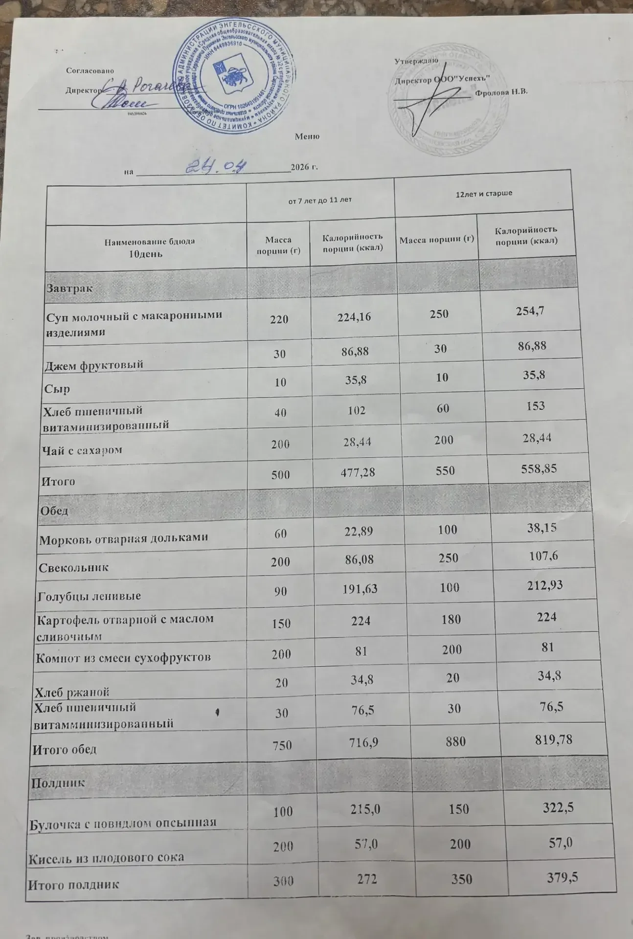 ☕24.04.2026🍲 Вид питания: завтрак Меню: 🔹суп молочный с макаронными изделиями 🔹джем фруктовый 🔹сыр 🔹хлеб пшеничный витаминизированный 🔹чай с сахаром
