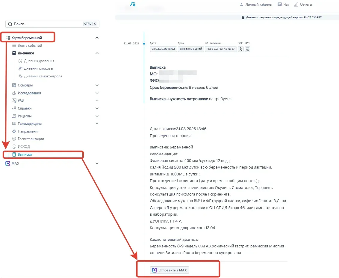 💥Дорогие будущие 🤰и новоиспечённые мамочки🤱 👍У нас отличные новости: в сервисе АИСТ СМАРТ появилось удобное обновление специально для вас! 💥Теперь в Карте беременной есть раздел «Выписки» — ваши медицинские документы стали ещё доступнее. ‼️Больше не нужно: ❌искать выписки в куче домашних документов; ❌звонить/писать в клинику, чтобы запросить копию; ❌тратить время на походы за бумажными копиями. Всё собрано в одном месте — прямо в вашем смартфоне! 📱 👆Что умеет новый раздел? ✅ Автоматически собирает все выписки из вашей электронной медицинской карты. Заходите в раздел — и видите полный список д…