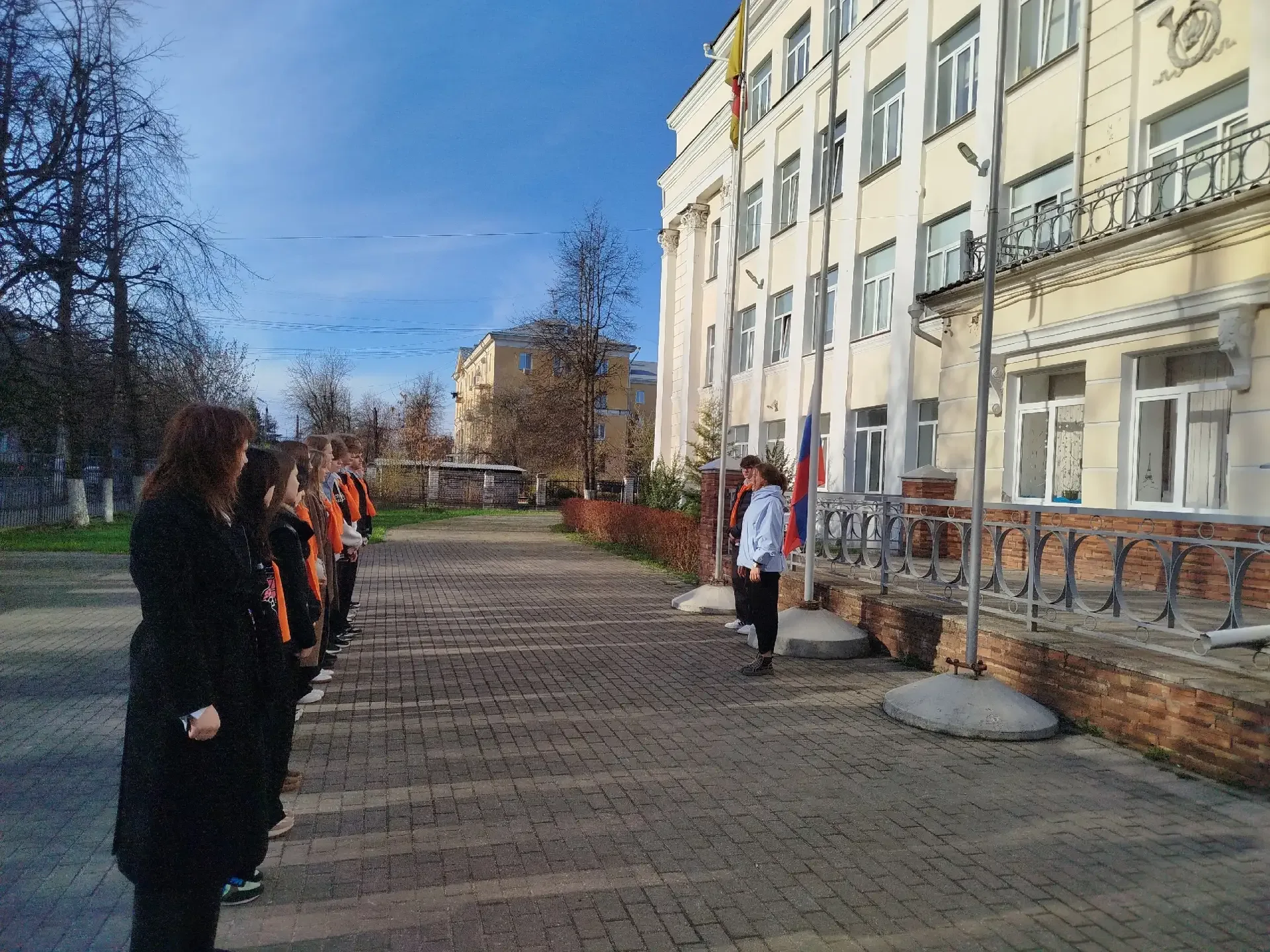 В МБОУ СОШ 17 прошла еженедельная церемония поднятия Государственного флага РФ и исполнения гимна России. На линейке присутствовали учащиеся 9-5 дежурного класса.