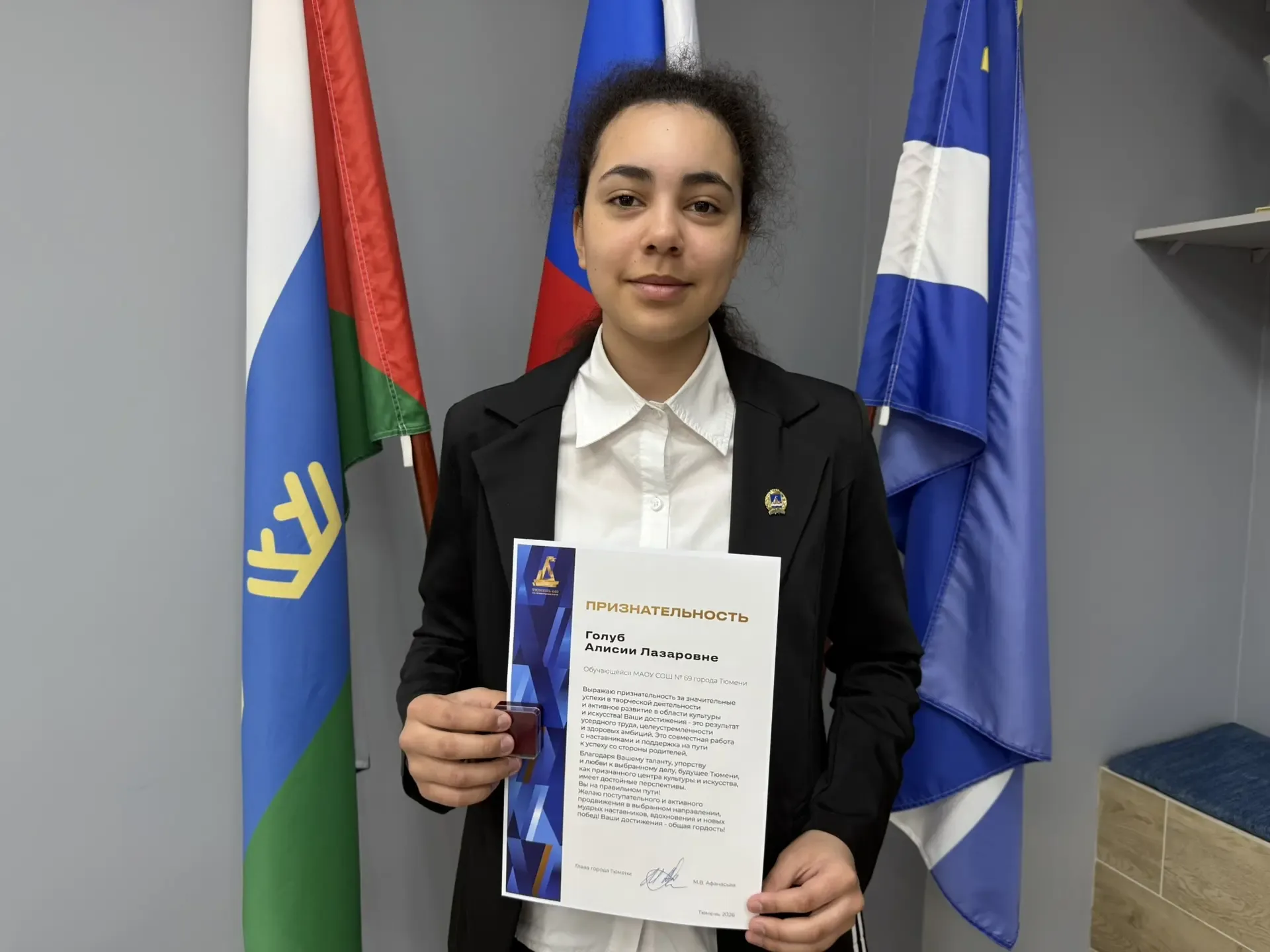 ⭐ НАША ГОРДОСТЬ: Стипендиаты Главы города Тюмени учатся в 69-й школе! 🎉Мы привыкли гордиться нашими учениками, но сегодня есть особенный повод! В Тюмени прошла торжественная церемония награждения стипендиатов Главы города. В этом году высокого звания удостоились сразу две замечательные ученицы нашей школы. 🏆 Голуб Алисия Лазаровна Выражаем признательность Алисии за значительные успехи в творческой деятельности и активное развитие в области культуры и искусства. Благодаря её таланту, упорству и любви к выбранному делу, будущее Тюмени как признанного центра культуры имеет достойные перспективы.…