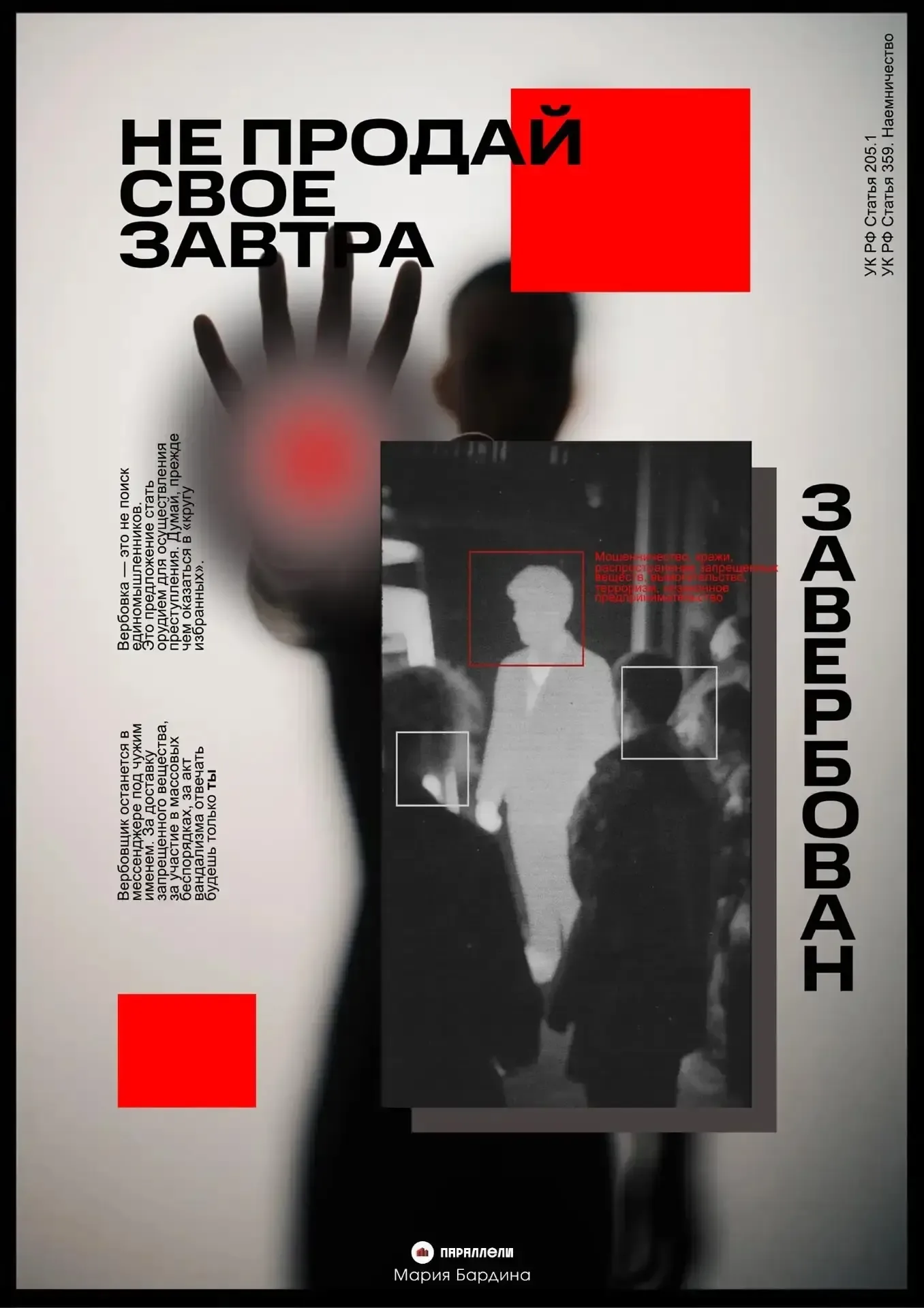 ⚠️ Не продай своё завтра 📌 Сегодня вербовщики не выглядят как преступники из кино: они маскируются под дружескую беседу, «опрос», «тест», предлагают лёгкий заработок или «справедливое дело». Они играют на эмоциях, вытягивают информацию шаг за шагом и подводят к действию, из которого уже нет пути назад — только суд и сломанная жизнь. ❗ Пожалуйста, помните: никакие обещания быстрых денег, «тайных заданий» или «настоящей дружбы» не стоят вашей свободы. Не отвечайте на подозрительные предложения в интернете, не передавайте никому личные данные, не скрывайте от родителей странные просьбы незнакомц…