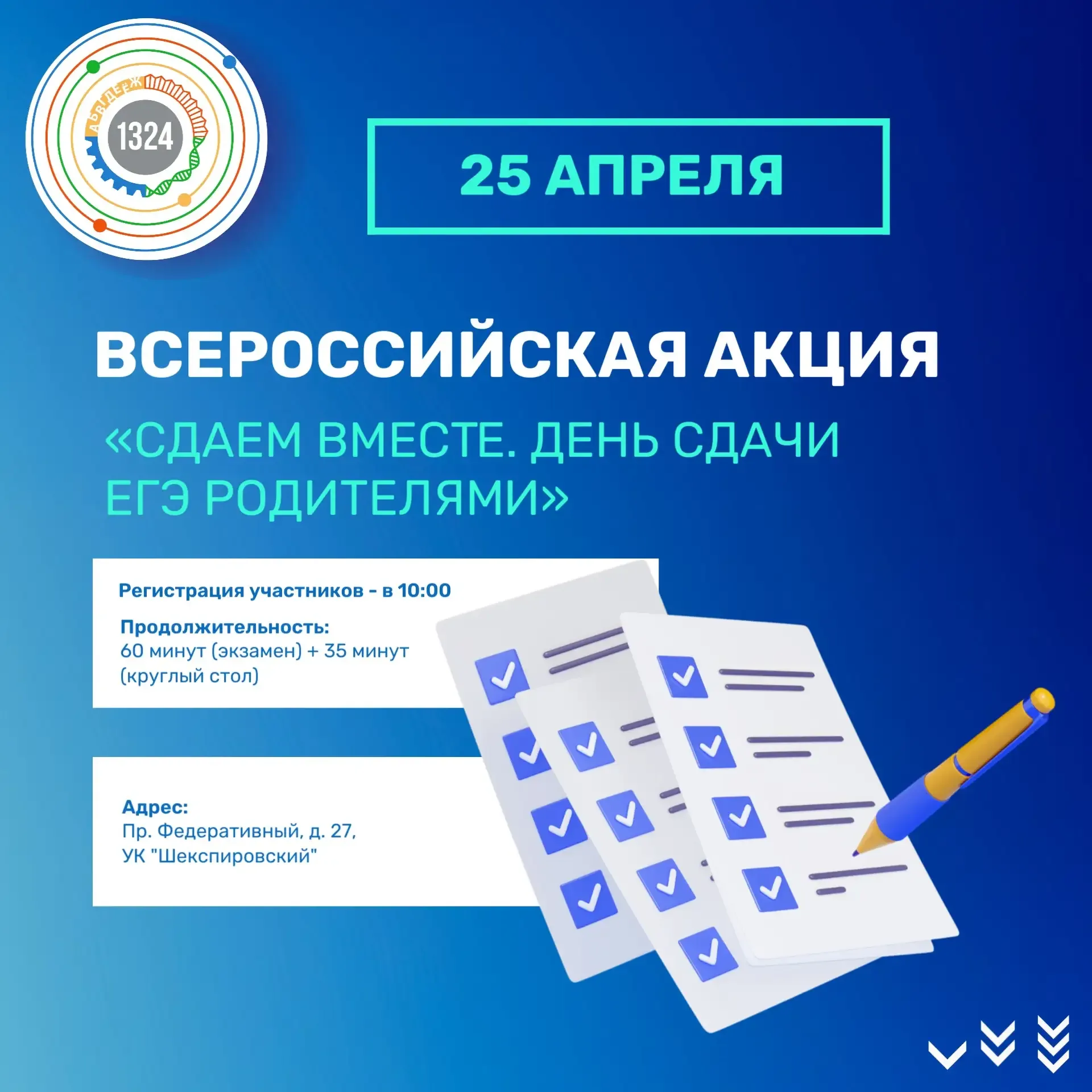 Уважаемые родители! Приглашаем вас принять участие вместе с директором нашей школы Александром Федоровичем Веретельниковым во Всероссийской акции «Сдаем вместе. День сдачи ЕГЭ родителями». Это уникальная возможность оказаться на месте своих детей и лично познакомиться с процедурой проведения государственного экзамена. Акция призвана помочь выпускникам и их семьям снять лишнее напряжение, связанное с подготовкой к ЕГЭ, и показать, что экзамен — это понятный и прозрачный процесс. ✍️ В этом году мы будем писать сокращённый вариант ЕГЭ по русскому языку, который даёт представление о заданиях разн…
