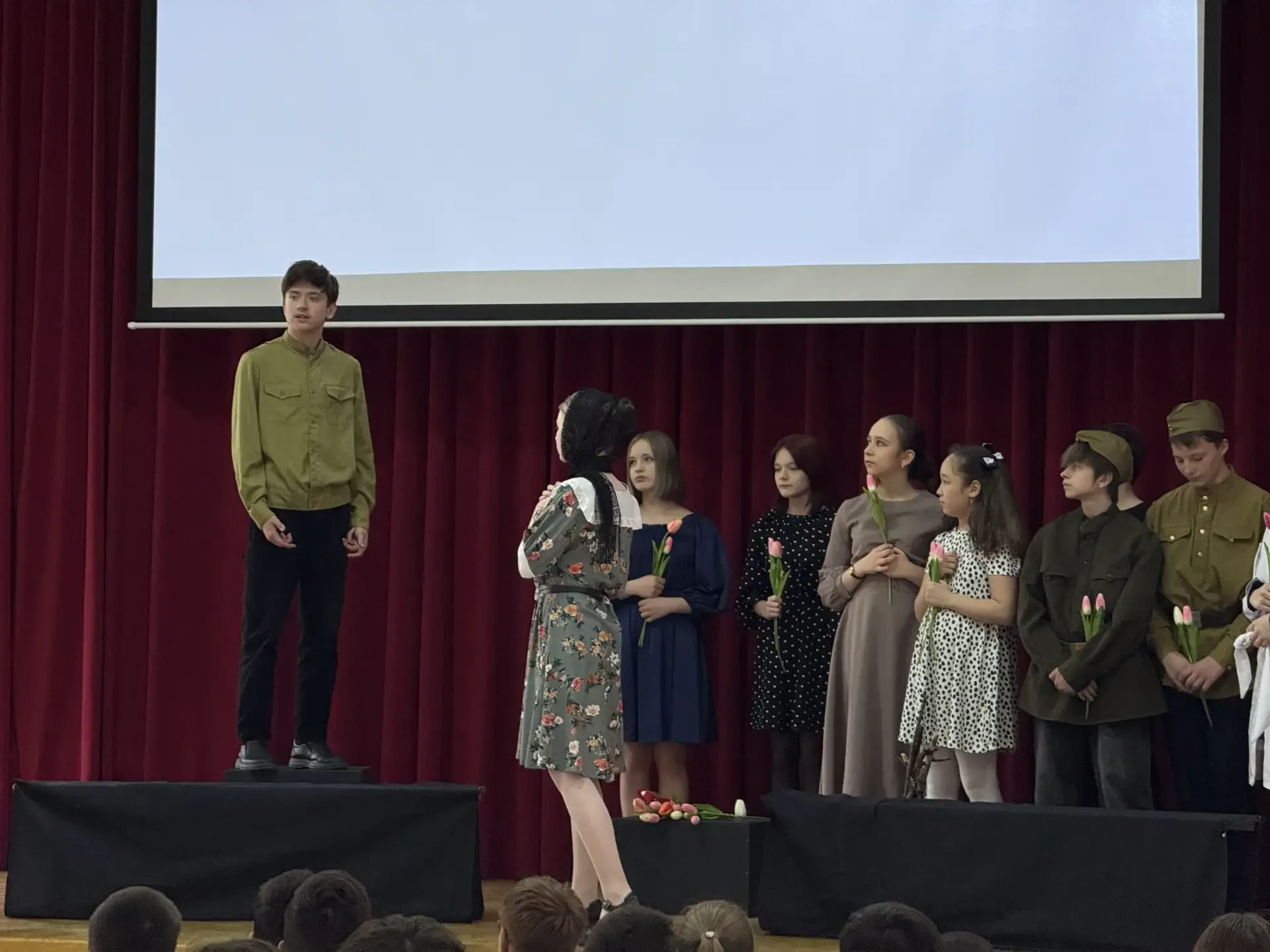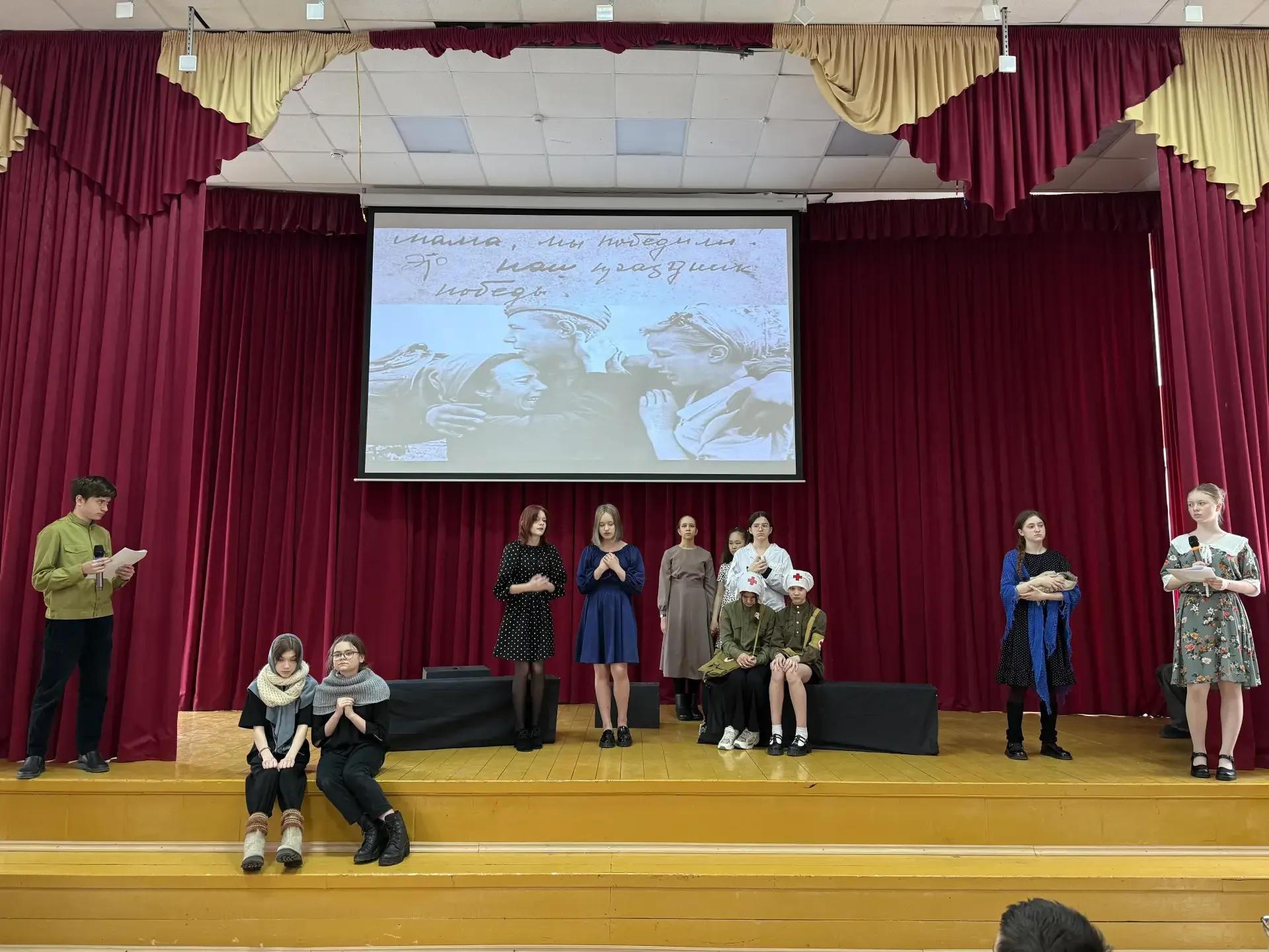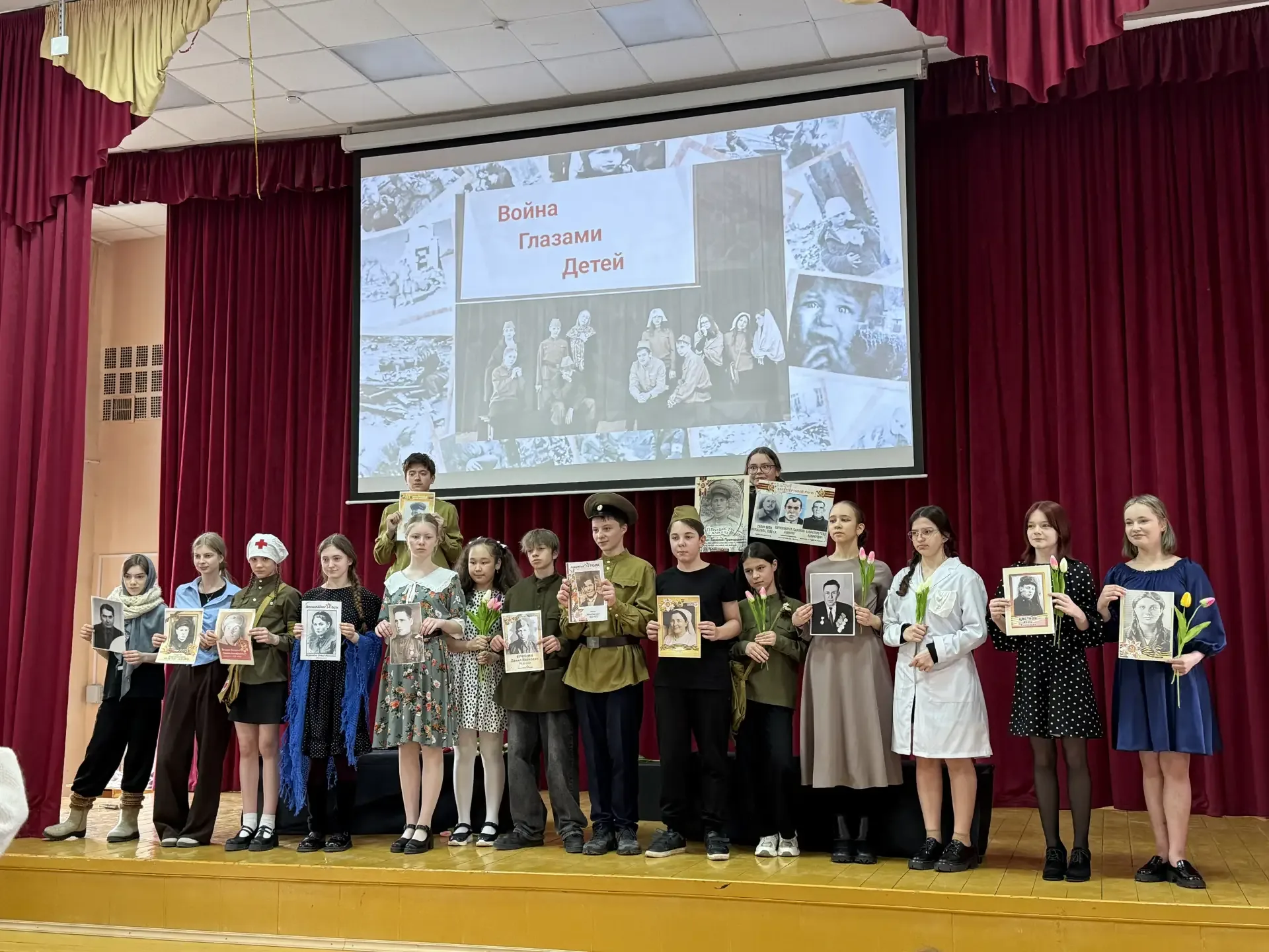 Война глазами детей 👀 В преддверии Дня Победы театральная студия «Каламбур» под руководством Жуковой Инны Олеговны представила свой новый спектакль «Война глазами детей». 🧒🏻 Страшные события 1941-1945 годов были рассказаны через судьбы детей. Герои постановки — такие же мальчишки и девчонки, как наши ученики сегодня. Но их детство было наполнено тревогами, ожиданием писем, потерями и невероятной силой духа. 🕊️ Такие постановки помогают не только узнать историю, но и прочувствовать её. Понять, какой ценой досталась мирная жизнь, как учились быть сильными, когда это казалось невозможным и почем…