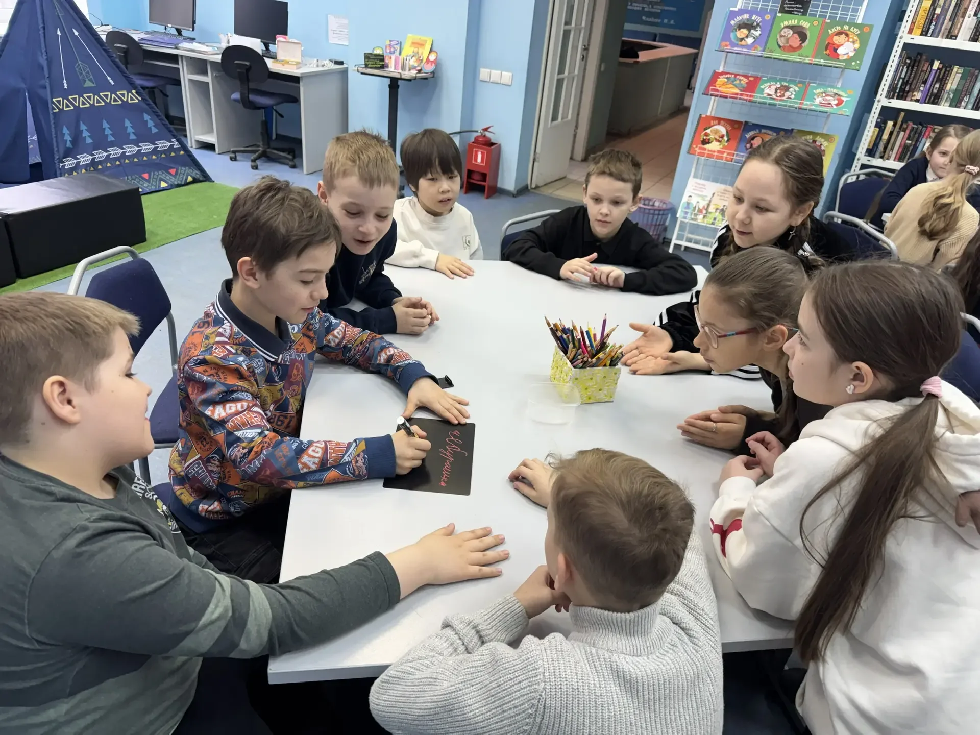 📖 Литературное путешествие в мир народных промыслов: 2 «Б» посетил библиотеку «Истоки» 📖 23 апреля ученики 2 «Б» класса побывали в Библиотеке № 200 «Истоки» на интерактивной литературной программе «Душа народа - в ремесле»! Ребята погрузились в удивительный мир традиций и промыслов народов России. Что было на мероприятии: ✨ Дети разделились на три команды -«Чебурашка», «Заячий домик» и «Орлята» и выполняли увлекательные задания: соотносили народные промыслы с их описанием на карточках. 📚 Читали сказки народов России, узнали много нового о культуре разных регионов нашей страны. 🔎 Отгадывали ис…