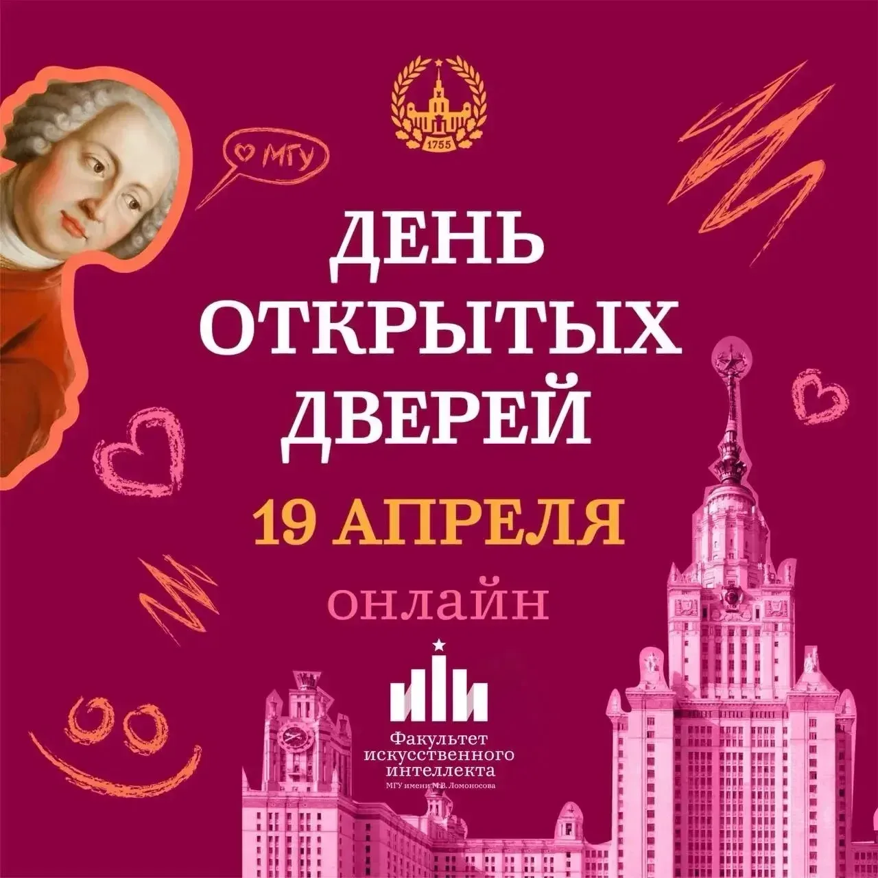 🎓 День открытых дверей факультета искусственного интеллекта Факультет искусственного интеллекта МГУ имени М.В. Ломоносова приглашает абитуриентов на День открытых дверей в онлайн-формате! 👉 В программе: — ответы декана на популярные вопросы про факультет — презентация программ бакалавриата и магистратуры — знакомство с разработчиками программы бакалавриата — консультация приемной комиссии — ответы на вопросы в режиме реального времени 🗓 Мероприятие пройдет 19 апреля в 13:00 🔗 Ссылка для подключения: https://my.mts-link.ru/j/148524705/16464128368 #ДОНМ #школа924 #ШколыКолледжиМосквы