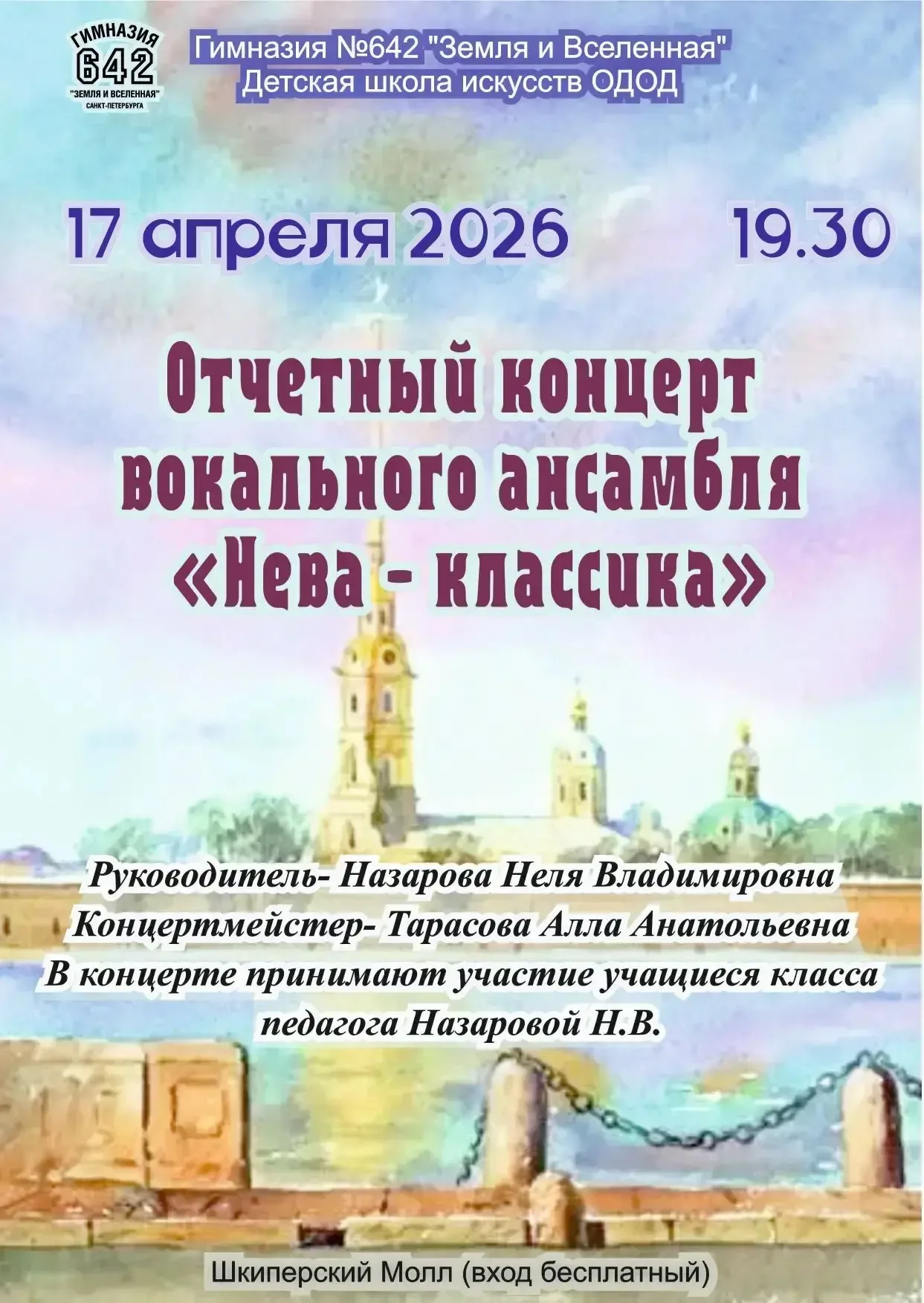 🎶 Дорогие друзья! 🎶 Детская школа искусств ОДОД с радостью приглашает вас на концерт вокального ансамбля «Нева-классика»! ✨ 🎤 Вас ждёт встреча с прекрасным: лучшие произведения классической и современной музыки, яркие голоса и незабываемая атмосфера искусства. Приходите насладиться талантом юных исполнителей и поддержать их творчество! 🌟 📅 Ждём вас на концерте!