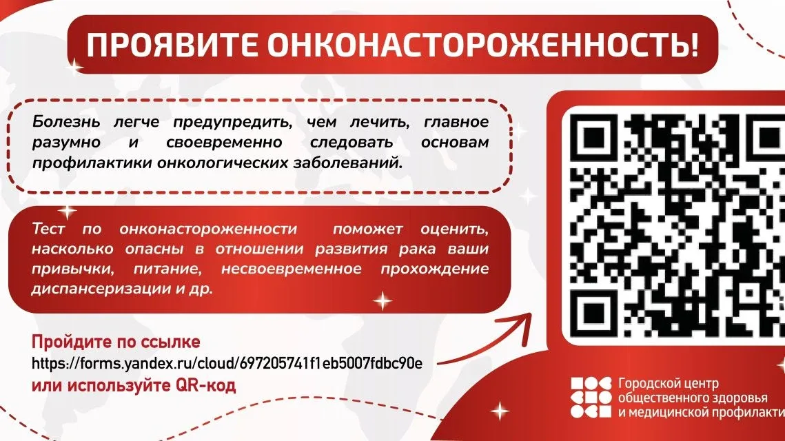 📝Тест по онконастороженности Онкологические болезни занимают второе место по смертности после сердечно-сосудистых заболеваний. Развитие опухолей зависит от множества факторов. 👨💻Приглашаем пройти тест «Онконастороженность», чтобы оценить, насколько опасны в отношении развития рака наши привычки. Цель теста — помочь минимизировать риски поздней диагностики и сохранить проактивный подход к здоровью. 😷Опрос анонимный и займет не более двух минут. Ссылка на тест forms.yandex.ru/cloud/6972...