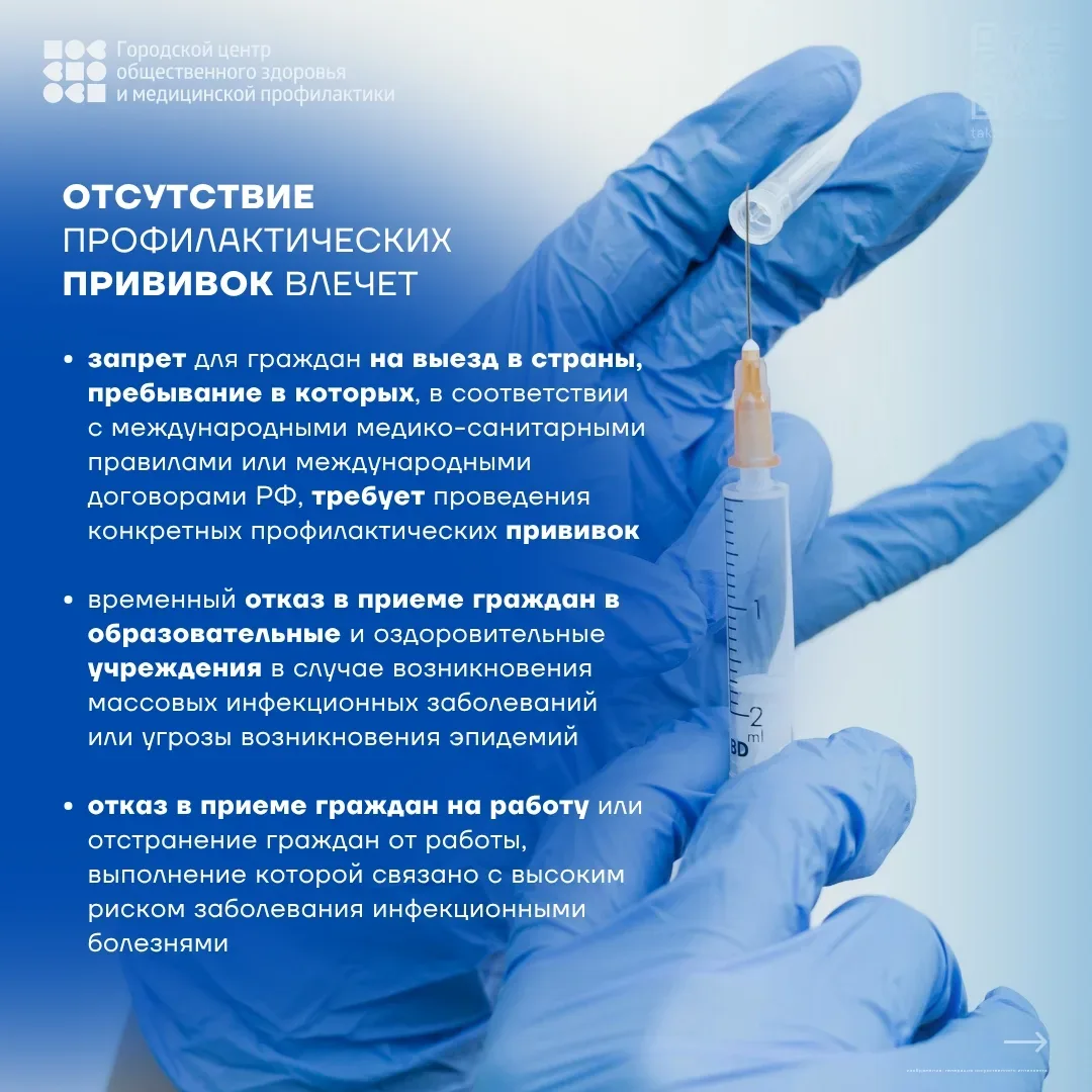 ⚡Цена отказа: чем рискуют дети без профилактических прививок Отказ родителей от профилактических прививок для детей может привести к серьёзным последствиям для здоровья ребёнка. ❗Некоторые заболевания, от которых защищают прививки, могут привести к смерти, инвалидности или тяжёлым осложнениям👇 • Корь. Вероятность смертельного исхода — 1 случай из 100, инвалидности — 5 случаев из 100. Осложнения включают пневмонию и коревой энцефалит • Дифтерия. Смертность может достигать 10 случаев из 100 • Коклюш. Высокий риск осложнений со стороны дыхательной и нервной систем. Для младенцев особенно опасен,…