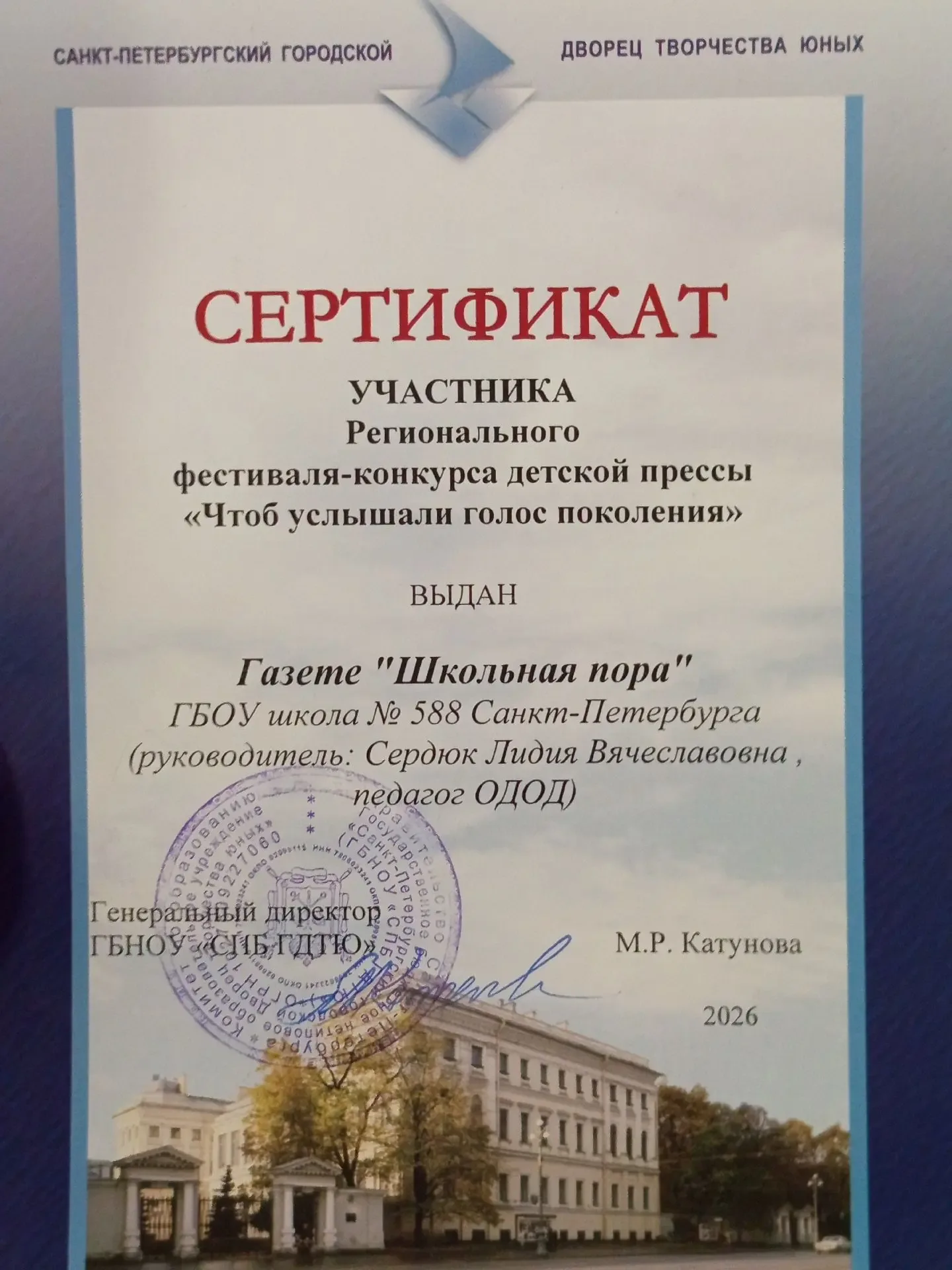 Канал @id7817027281_gos — это официальный информационный ресурс Государственного бюджетного общеобразовательного учреждения средняя общеобразовательная школа № 588 Колпинского района Санкт-Петербурга. Здесь вы найдёте актуальные новости, анонсы школьных мероприятий, важные объявления для учеников, их родителей и педагогов.