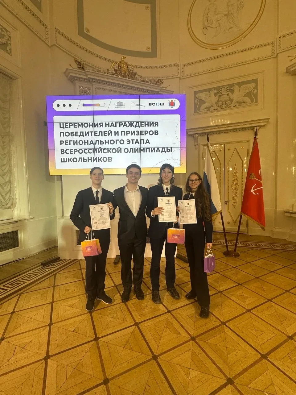 15 апреля в Каменноостровском дворце награждали победителей и призёров регионального этапа ВсОШ по истории. Среди них - целых три учащихся нашей школы! На региональном этапе ВсОШ победителями стали Николай Тупицын (9б класс) и Дмитрий Фёдоров (10а класс), а Екатерина Васильева (8а класс), выступая за 9-й класс, завоевала статус призёра. Поздравляем с этим великолепным результатом наших олимпиадников и их учителя Ирину Валерьевну Кобак. Уже совсем скоро Николай и Дмитрий в составе сборной Санкт-Петербурга отправятся на заключительный этап ВсОШ по истории. Ребятам желает успеха не только вся шк…