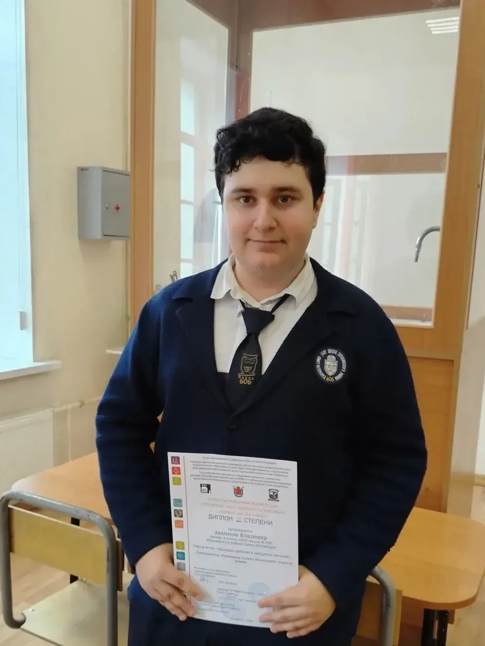 Ученик 9 В класса Аванесов Владимир успешно выступил на районной конференции проектных и исследовательских работ "Первые шаги в науку" с работой по химии "Пищевые добавки в продуктах питания" и награжден дипломом 2 степени.